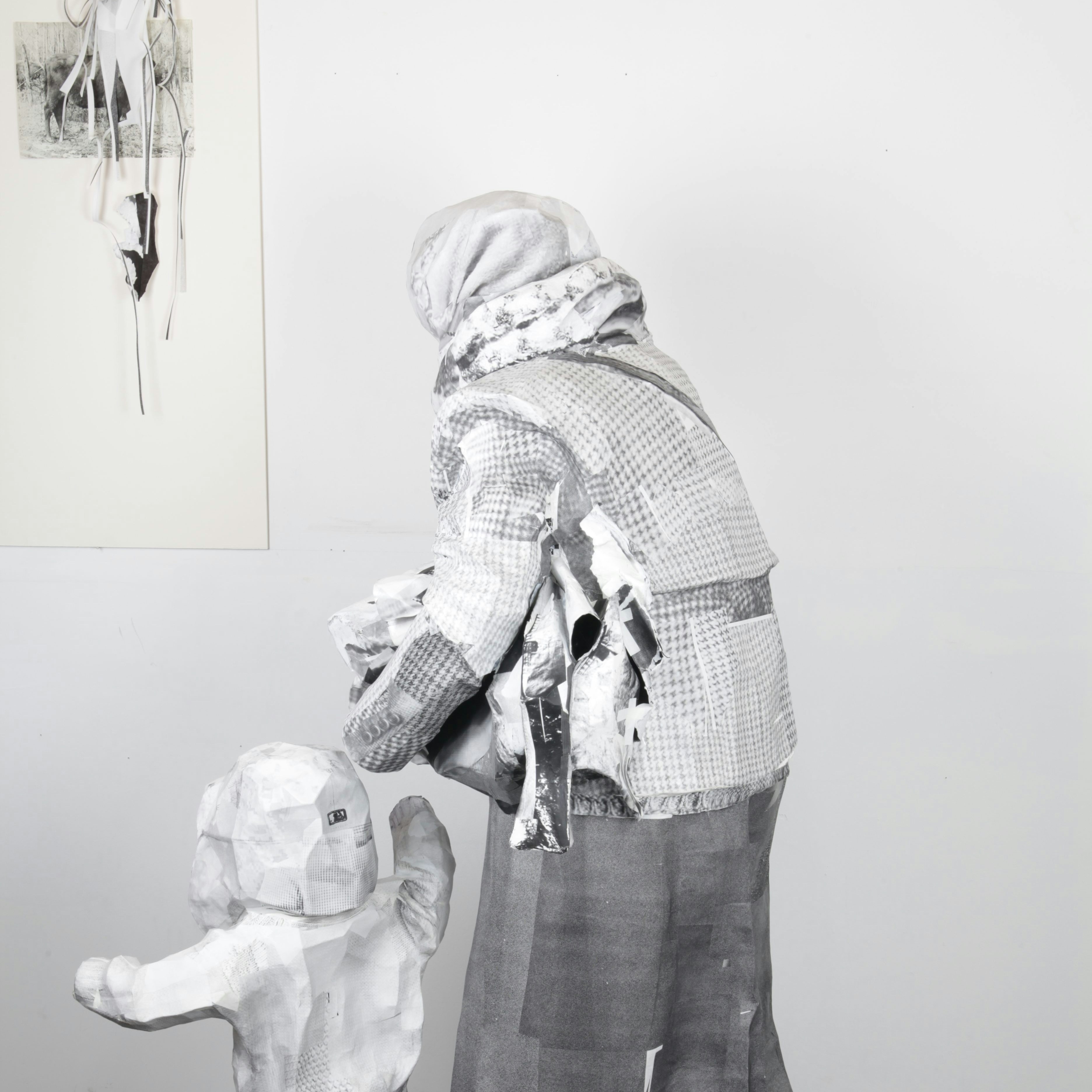 播磨みどりは1976年横浜生まれ。2000年に女子美術大学芸術学部絵画科版画コースを卒業し、05年よりニューヨークに在住。雑誌や新聞など既存のメディアからのイメージをコピーし、張子状に組み合わせて作品を制作している。