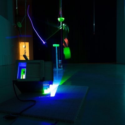 本展で志水は、レーザー光線を用いた新作のほか、世界規模でTwitter上の特定のキーワードを監視し続ける作品を発表。さらに堀尾も、展示会場で即興的に築いた物質、空間、現象の関係性を、空間全体を使ったインスタレーションとして表現する。