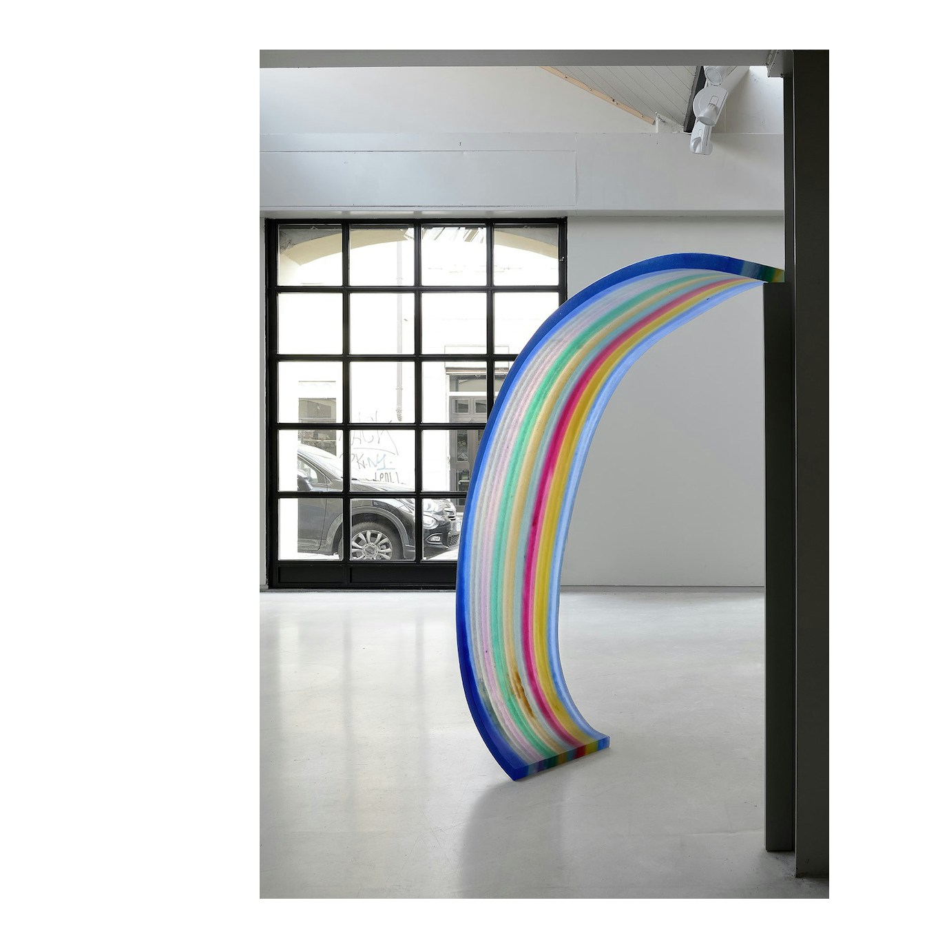「壁画」の延長線上として、柱と色を組み合わせた作品を発表するなど、アイデアの拡張性に富んだ作品群は、見る者の感覚を固定化しない自由な世界へ解き放ち、「現在」の認識を問いかけるだろう。
