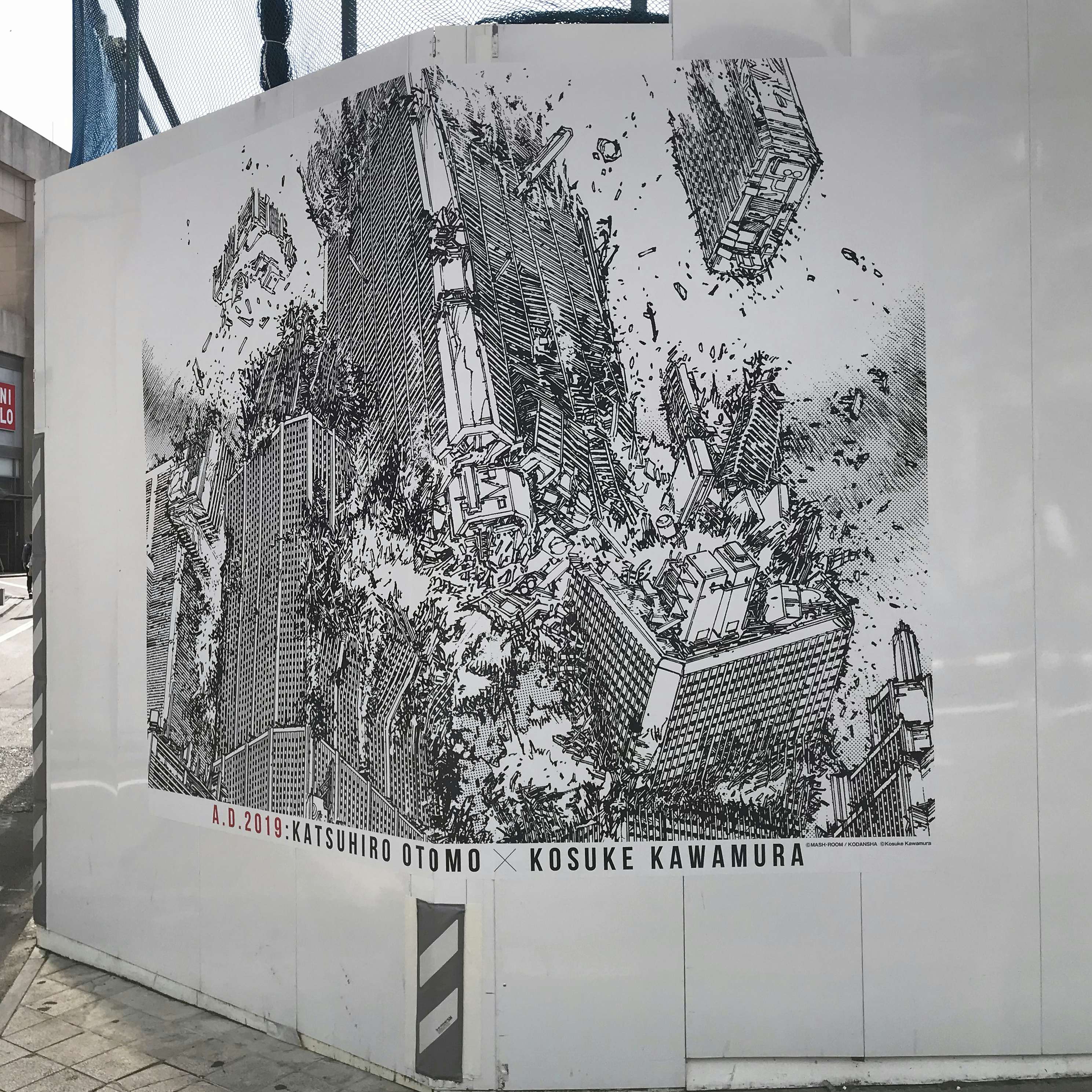 パルコは、建替えのため一時休業中の渋谷PARCOの工事仮囲いを2017年10月から「アートウォール」として展開。日本を代表するマンガ家・映画監督である大友克洋の代表作『AKIRA(アキラ)』を、コラージュアーティストの河村康輔と共同で再構築した作品で、通行者の目を楽しませてきた。