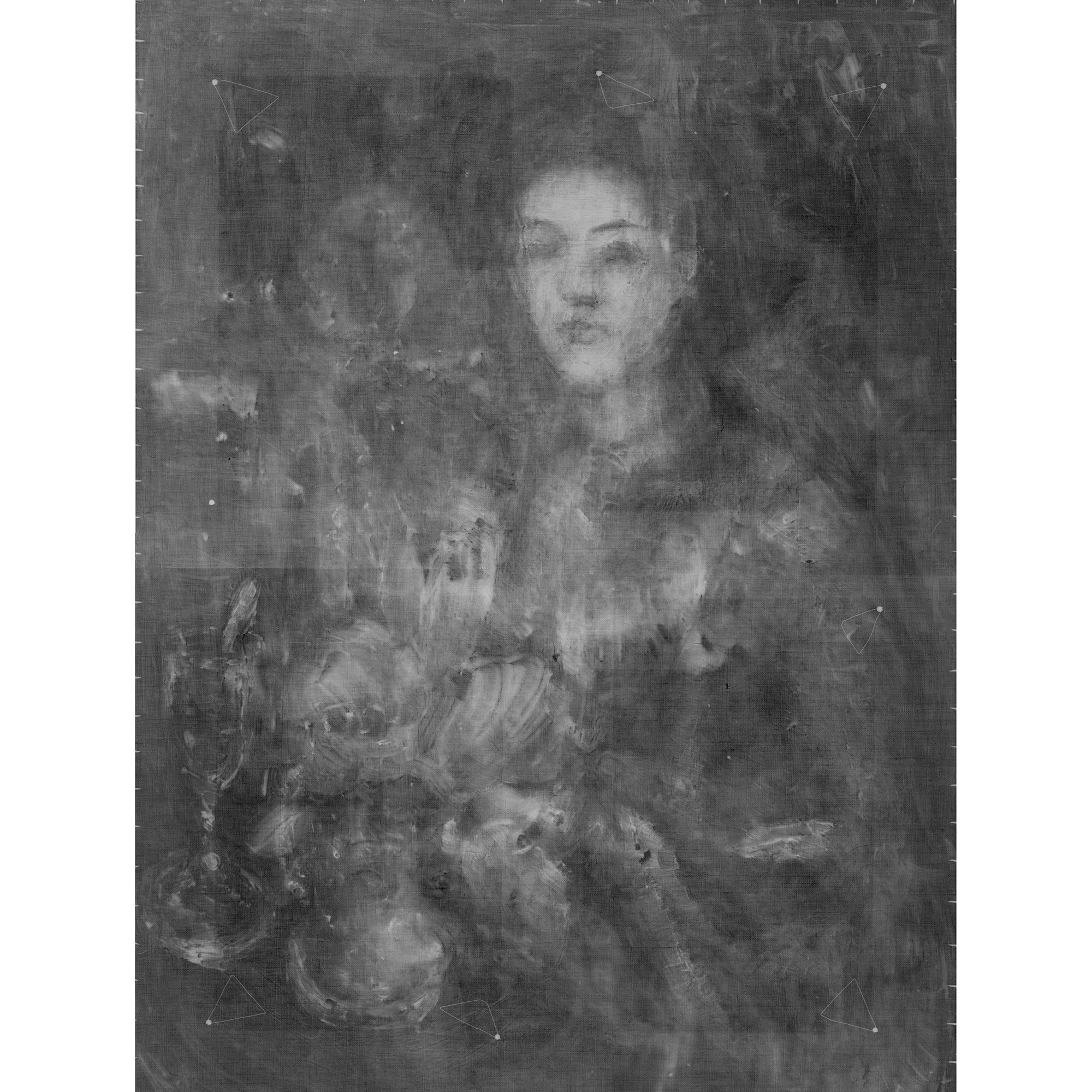 また、過去の調査からすでに判明していた下層部に描かれている女性像については、より鮮明な画像を取得することができたことも発表された。スプーンが入ったグラスや女性が座る椅子の一部などが確認できる。