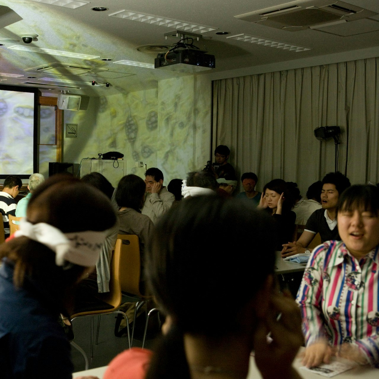 会話や身体といった身近な事柄を取り上げる活動・作品として、障害の有無によらず、多様な人とうたをつくるワークショップを主催する即興からめーる団、一貫して「意味の伝達」を問い続ける関川、自身も利用する車椅子を素材に作品を組み上げる檜皮、そして障害者の創作活動を支える 「やまなみ工房」から、本人にしかわからないリズムを絵によって共有する榎本の作品が紹介される。