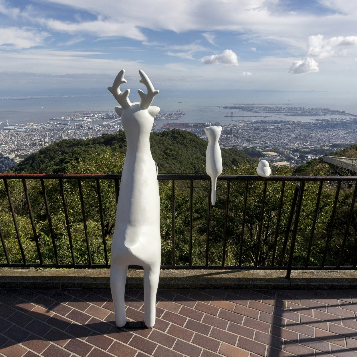 同作は動物をかたどった3体の彫刻で構成されており、「野生動物も人と同じ景色を見ている」ということに着眼したもの。六甲ケーブル六甲山上駅近くにある飲食店のテラスに設置されていたが、9月16日夜に何者かが施錠してあった会場に進入し、破壊。3体のうち1体が現場からなくなり、また残る2体は足が折られるなど大きな被害を受けた。