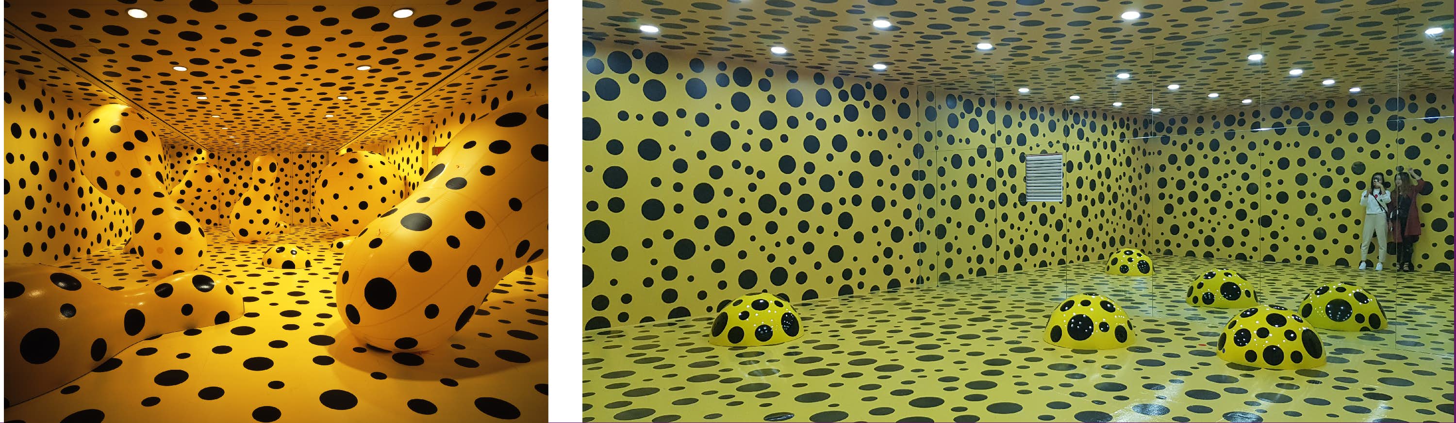 (右:贋作)上海 LuOne 凯德晶萃广场の展示風景 Courtesy of YAYOI KUSAMA FOUNDATION