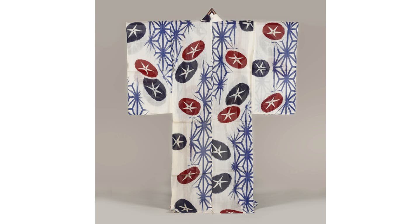 白紅梅織地朝顔麻葉模浴衣 20世紀 東京都江戸東京博物館蔵