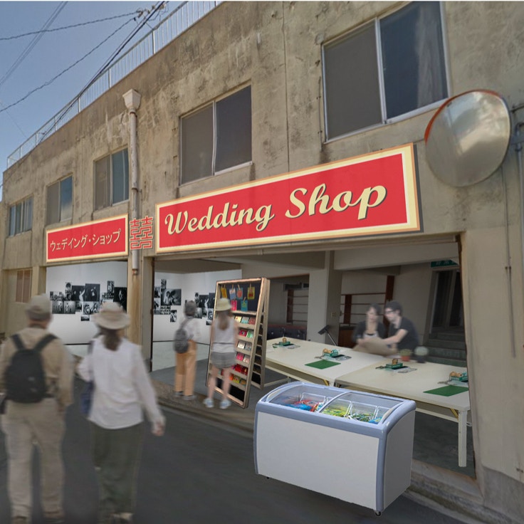 梁家泰(リョン・カータイ)+赤い糸は、「女木島という社会での結婚の意味の移り変わりを読み解き、人と人との多様な関係性を結婚と同じように祝福し、島に取り戻す」というコンセプトのもと、芸術祭にあわせてウエディングショップをオープン。この作品を通して参加者は、じっさいに結婚式を挙げることができるというユニークなものだ。