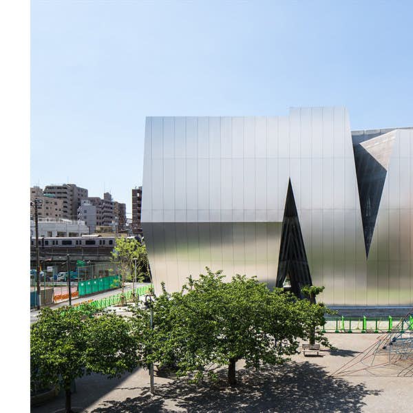 館内は地下1階地上4階建てで、大小2つの企画展示室と常設展示室のほか、図書室、講座室、ミュージアムショップなどが併設されている。設計は妹島和世。SANAAとして金沢21世紀美術館や、フランスのルーヴル・ランスなど多くの公共施設を設計してきた妹島が「すみだ北斎美術館」の設計コンセプトとして据えたのは「街に開き、地域住民の方々に親しまれる美術館」「常に新しいチャレンジを試みた北斎の精神を感じることができる美術館」など。たしかに、デザインは新しく挑戦的、にもかかわらず町の風景がシルバーの壁に映り込み、ゆるやかに溶け込んでいくような柔らかい印象の建築に仕上がった。