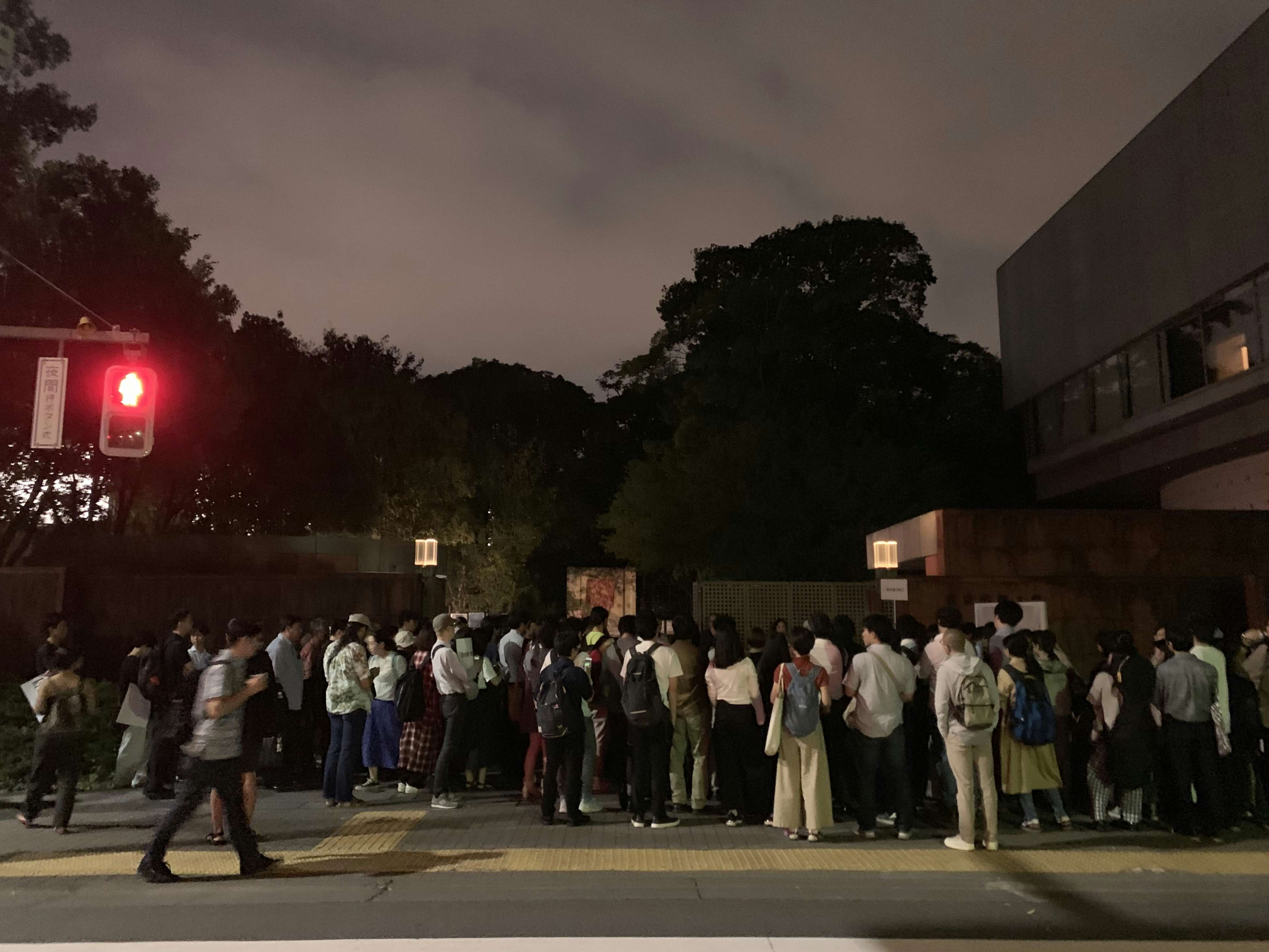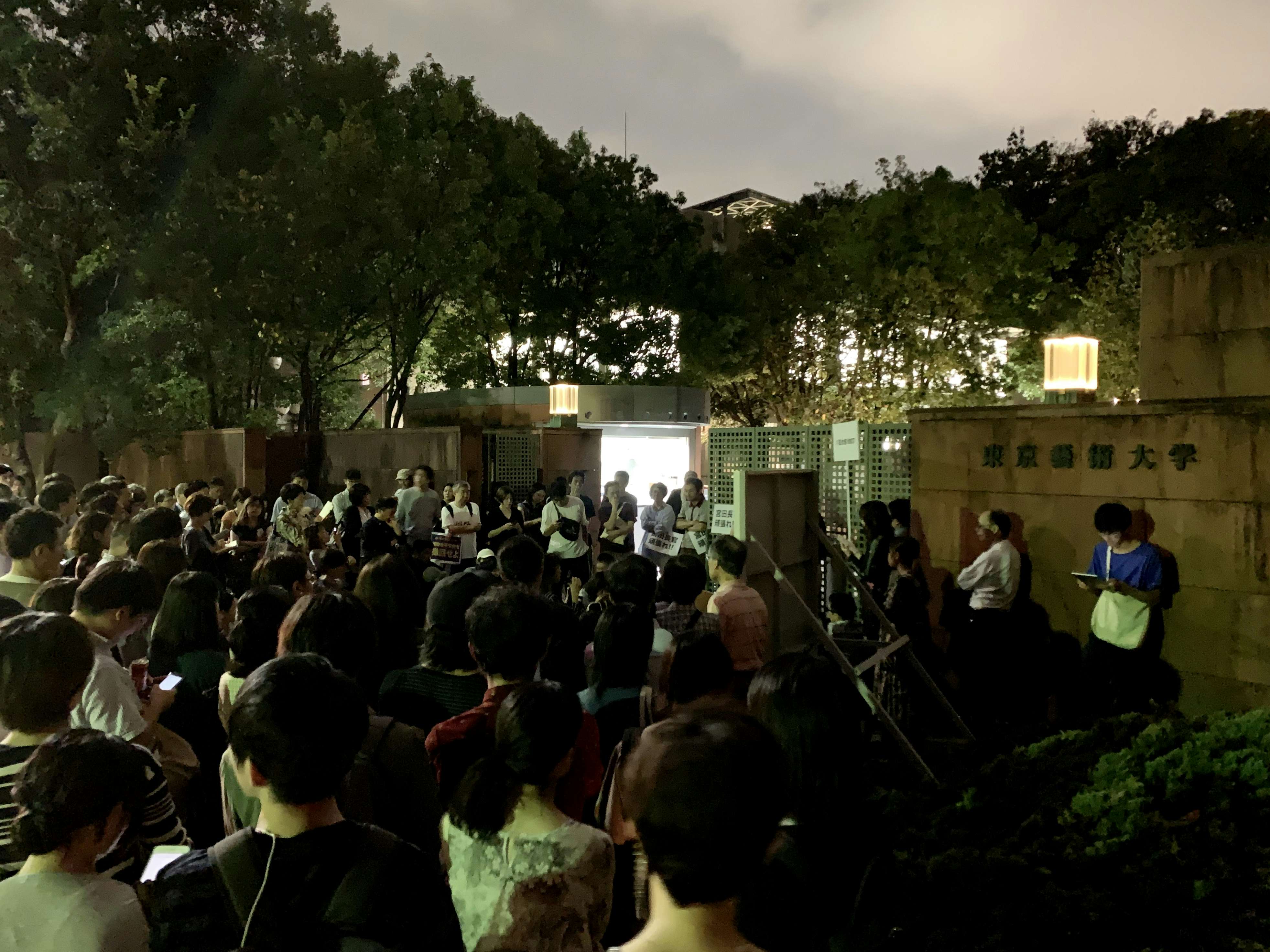 東京藝術大学美術学部(上野)の正門前に集まる人々