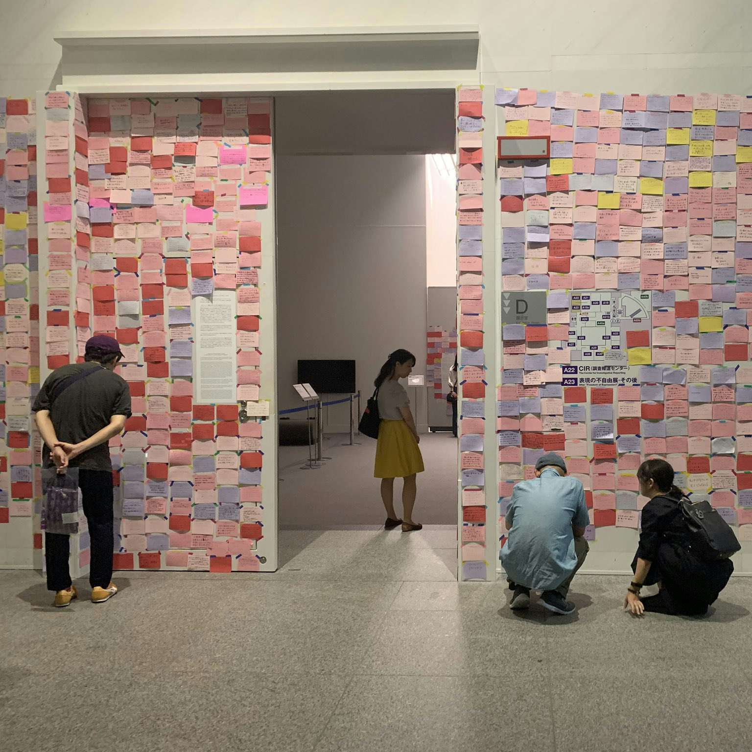 扉はその後、すべての展示再開を目指すトリエンナーレ参加作家によるプロジェクト「ReFreedom_Aichi」の「#YOurFreedom」のために使用され、来場者がそれぞれの「不自由」を書いた付箋がびっしりと覆っていた。