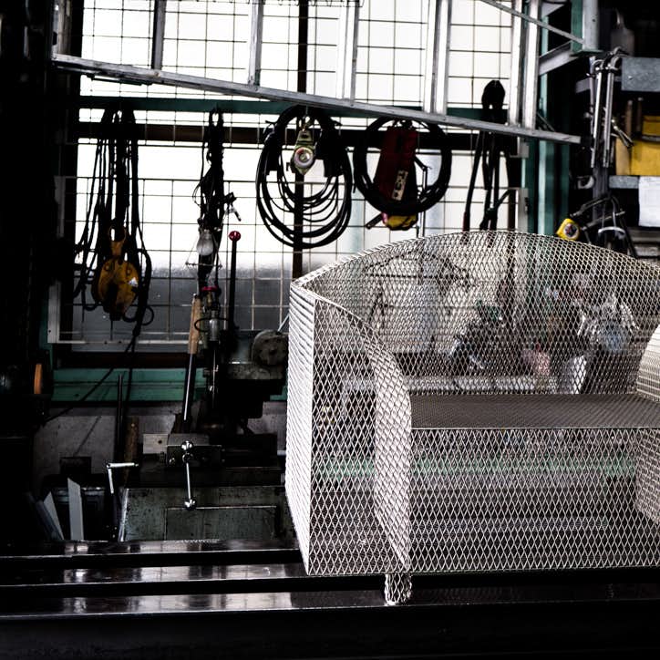 日本で製作されたモデルは、エキスパンド・メタルの先端と先端を「ろう付け」の技法でつないでいるのが特徴。当時のメッキではなく、環境に配慮したニッケルサテンでオリジナルに近い仕上げとなっている。
