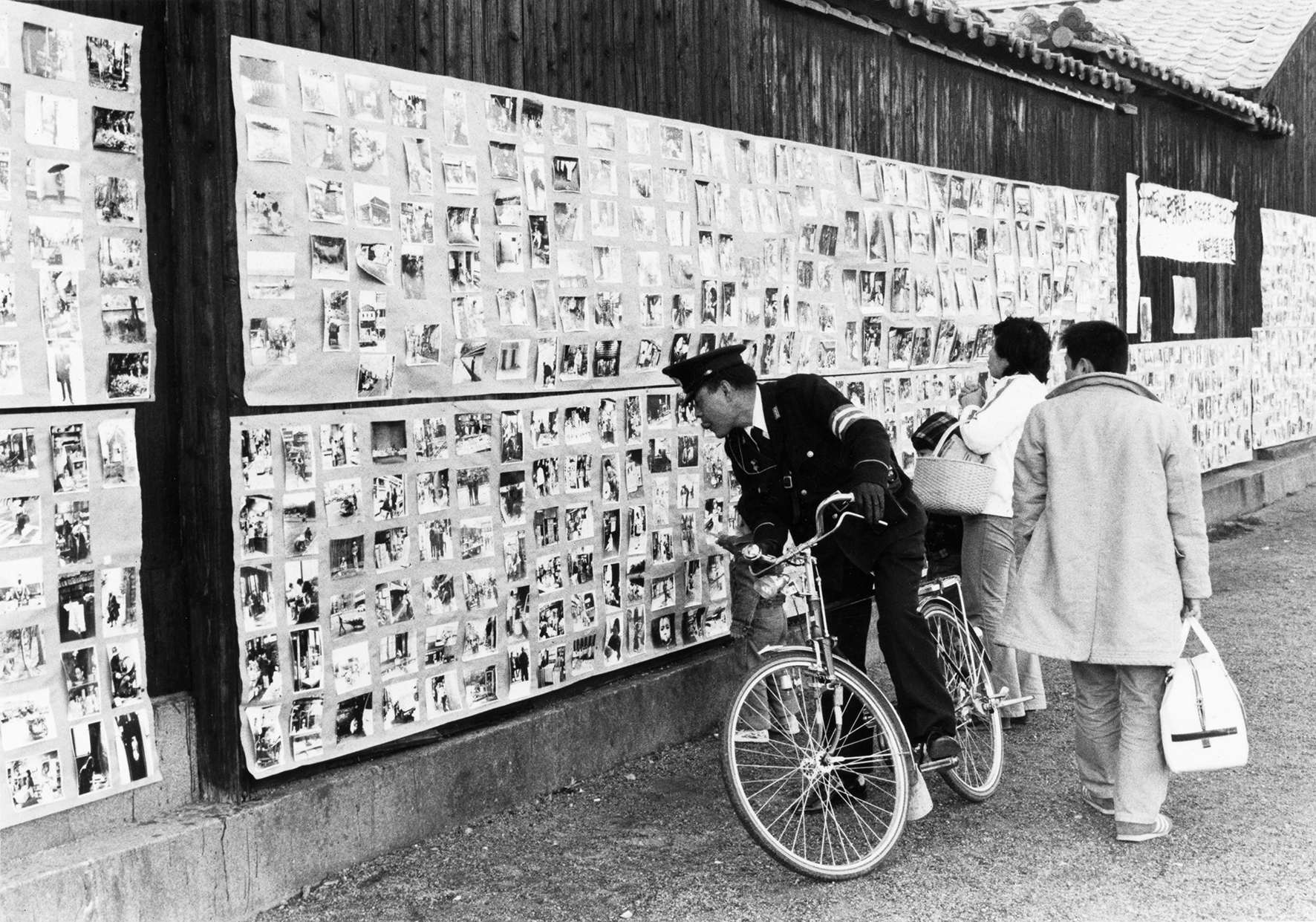 甲斐 扶佐義 青空写真展の中に自分の姿を探す警察官 1978 © Kai Fusayoshi