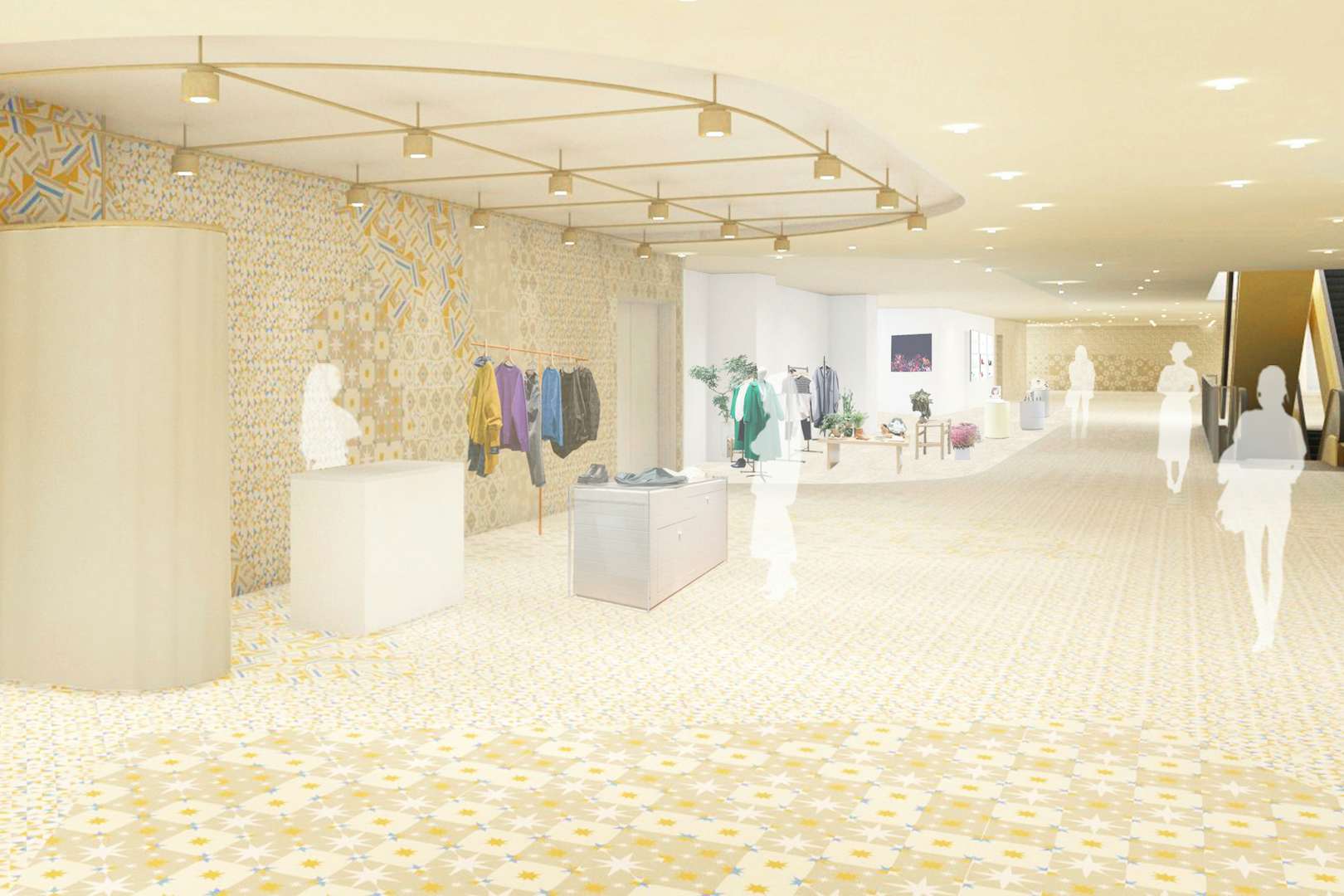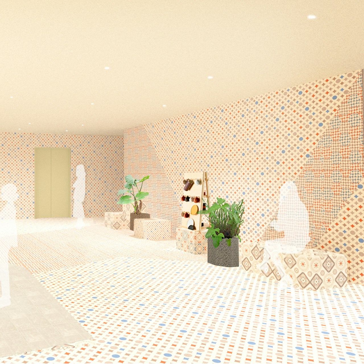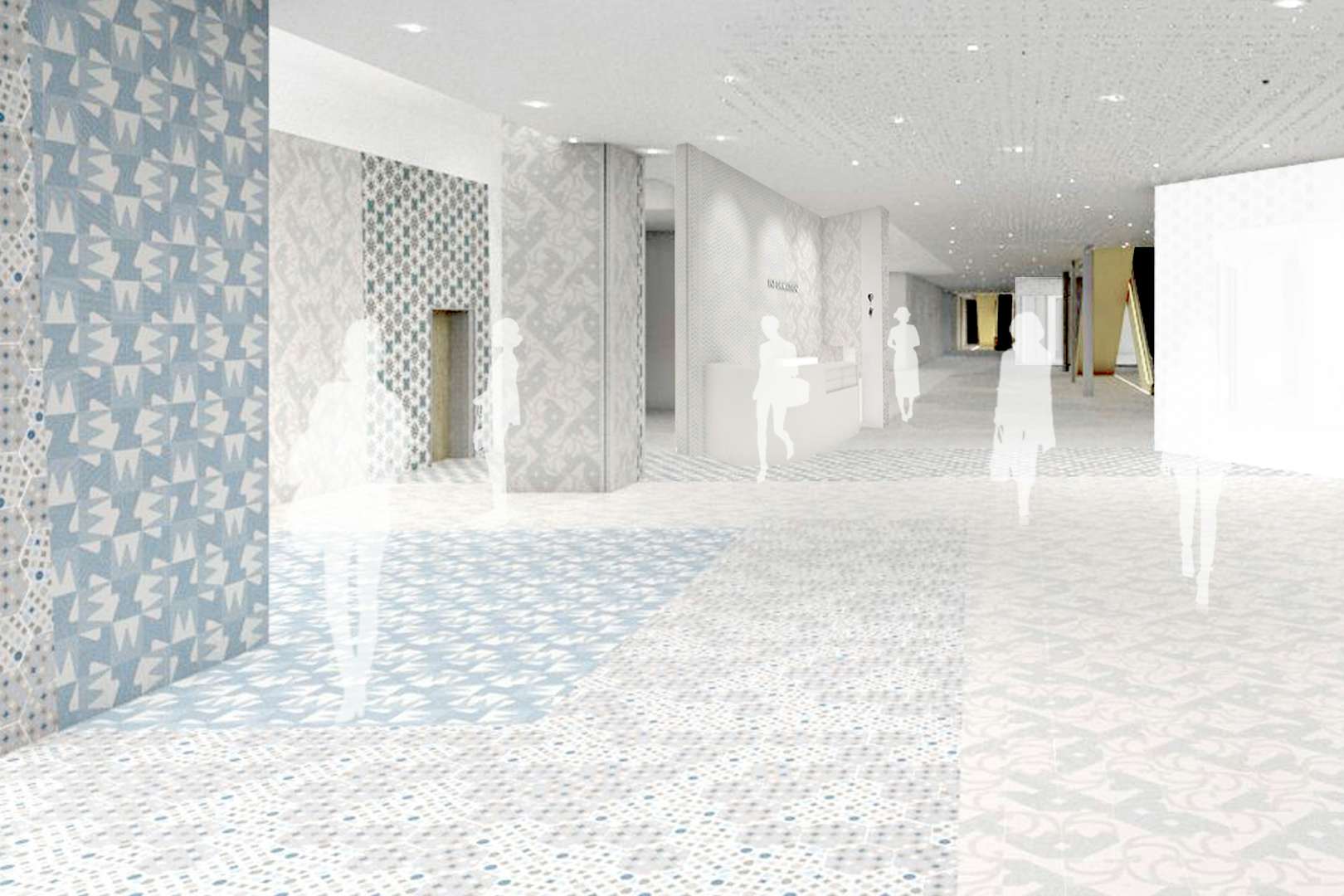 田根が手がける館内は、「GLOBAL PORT CITY」をテーマに、各フロアで異なるタイルを30万枚使用し、1万5000平米を覆う。