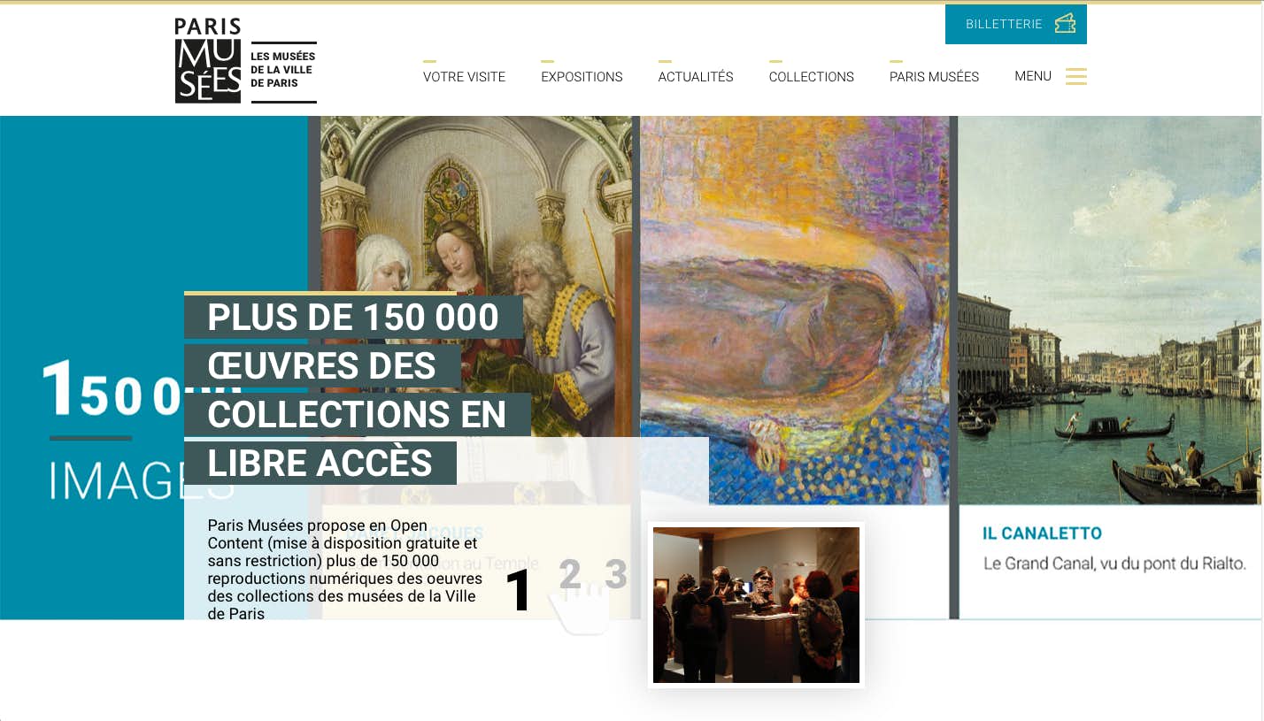 パリ市立近代美術館やパリ市立プティ・パレ美術館など、パリ市内14の美術館のコレクションを管理する公共団体「Paris Musées(パリ・ミュゼ)」が、これらの美術館が所蔵する約15万点の作品画像を「オープン・コンテンツ」として無料かつ制限なく利用可能にしている。