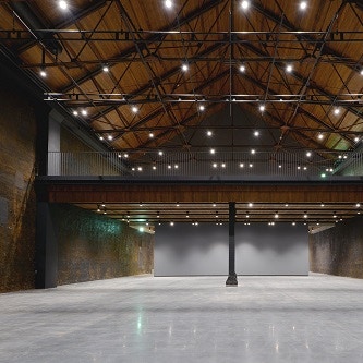 竣工したその姿からは、「シードル・ゴールド」のチタン製の菱葺屋根や、高さ最大15メートルの吹き抜け空間、もともとあったコールタールの質感を活かした壁など、独特の意匠がうかがえる。