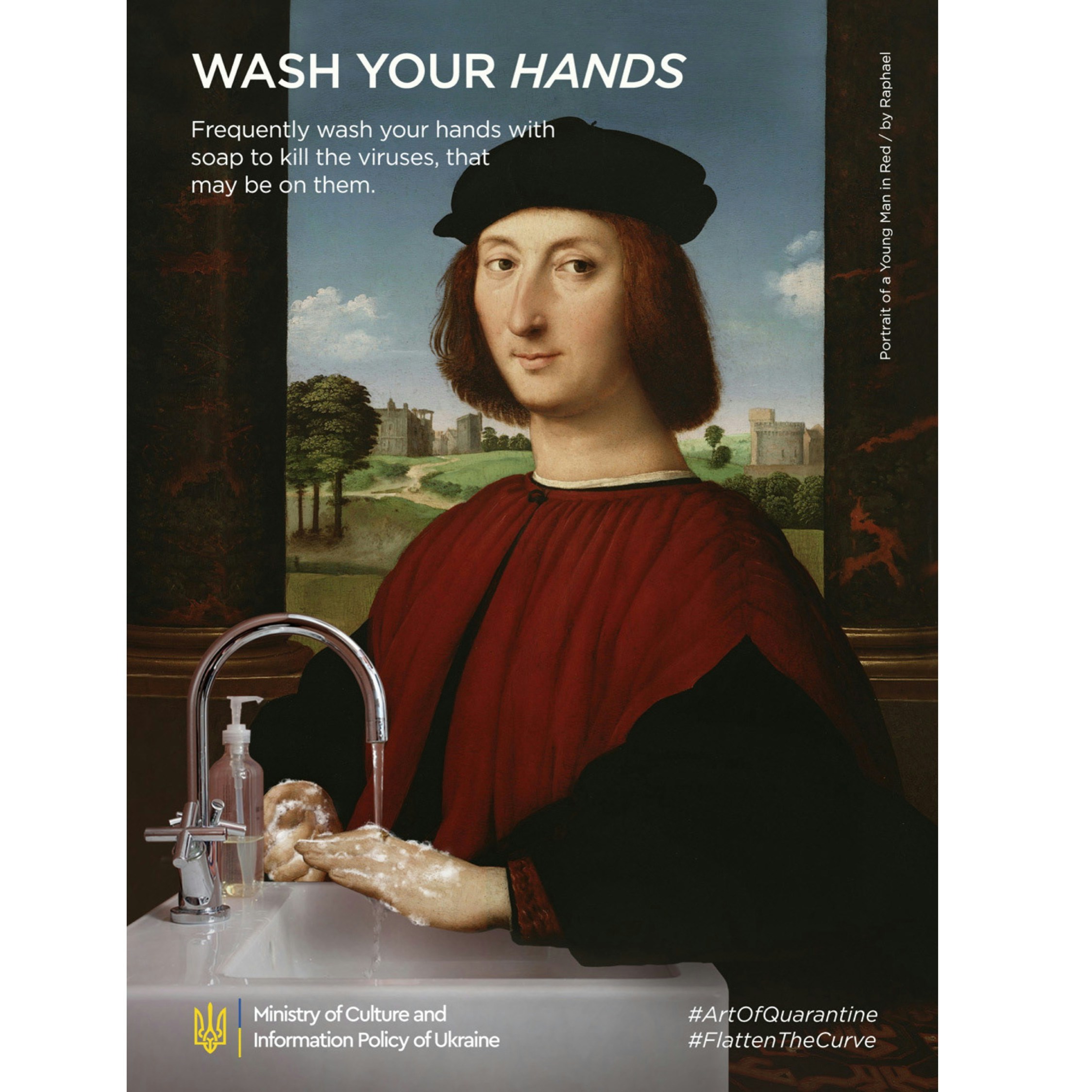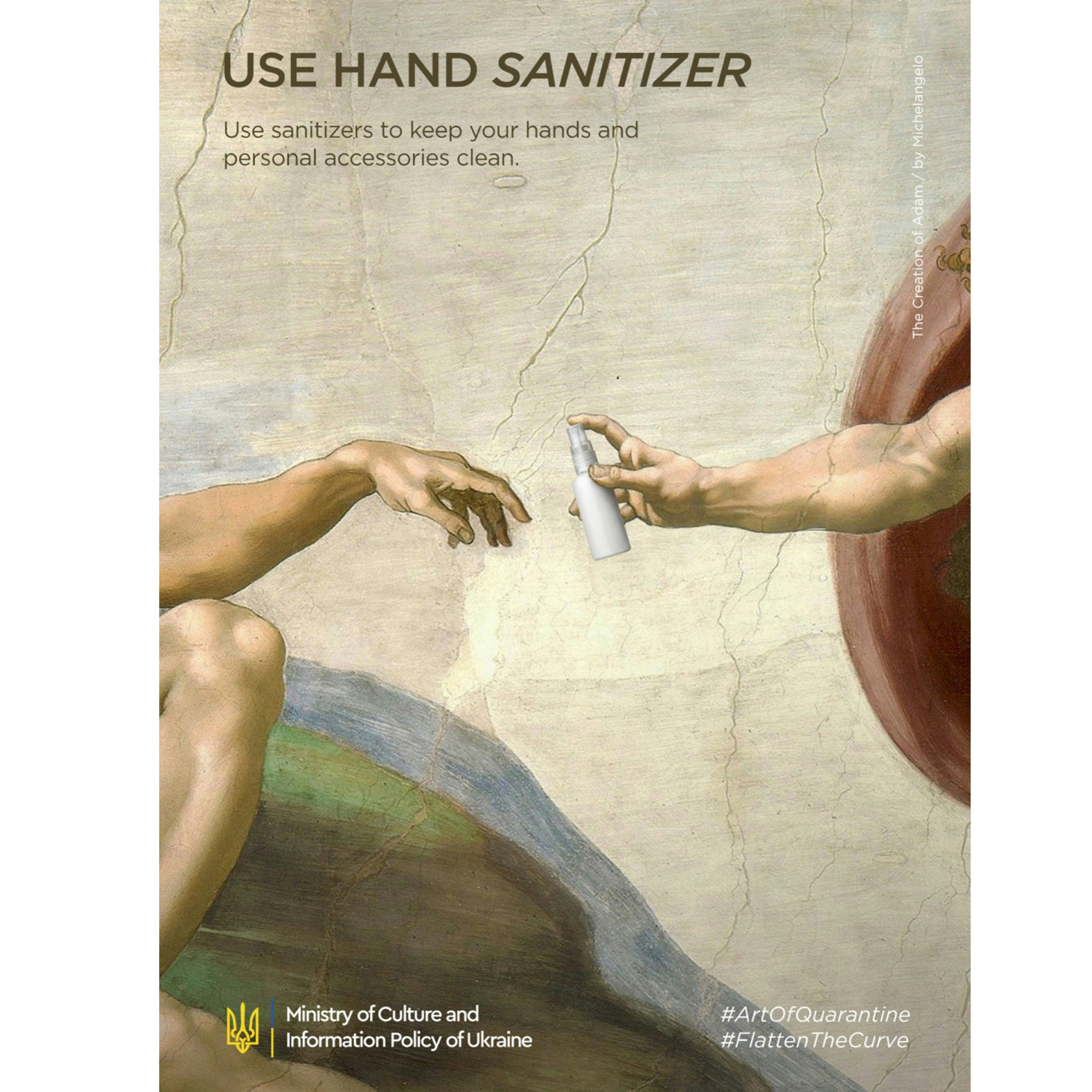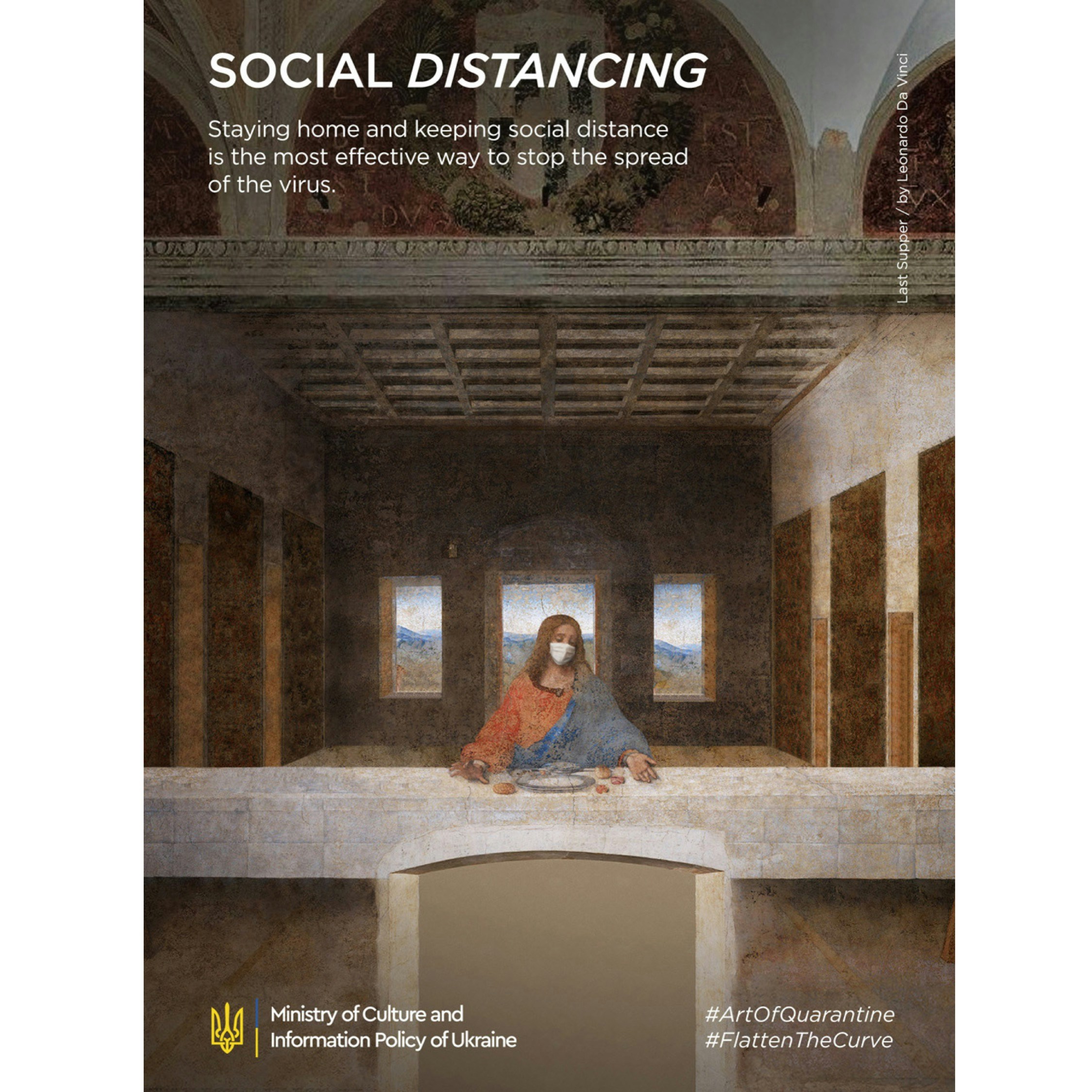 ウクライナの広告代理店「LOOMA」が制作したこれらのポスターは、古典美術の作品にマスクや医療用手袋など検疫期間中によく見られる要素を加えることで、新型コロナウイルスの拡散を防ぎ、安全を保つ方法を伝えるものだ。