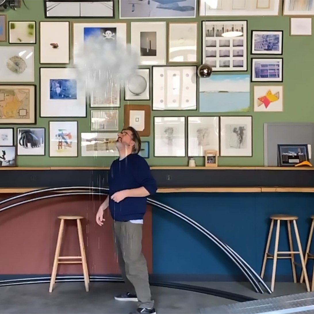 「WUNDERKAMMER」とは、ドイツ語で様々な珍品を集めた博物陳列室である「驚異の部屋」を意味する言葉。このプロジェクトでは、エリアソンのスタジオにある自然物や小型の作品、実験的なオブジェをAR技術で再現。エリアソンの代表作として知られている巨大な人工の太陽のインスタレーションをはじめ、そのARの太陽によって“充電”できるLEDライト《リトル・サン》や、つねに真北に浮動するコンパス、きらめく虹、雨を放つ雲などのアート作品を自宅で楽しむことができる。