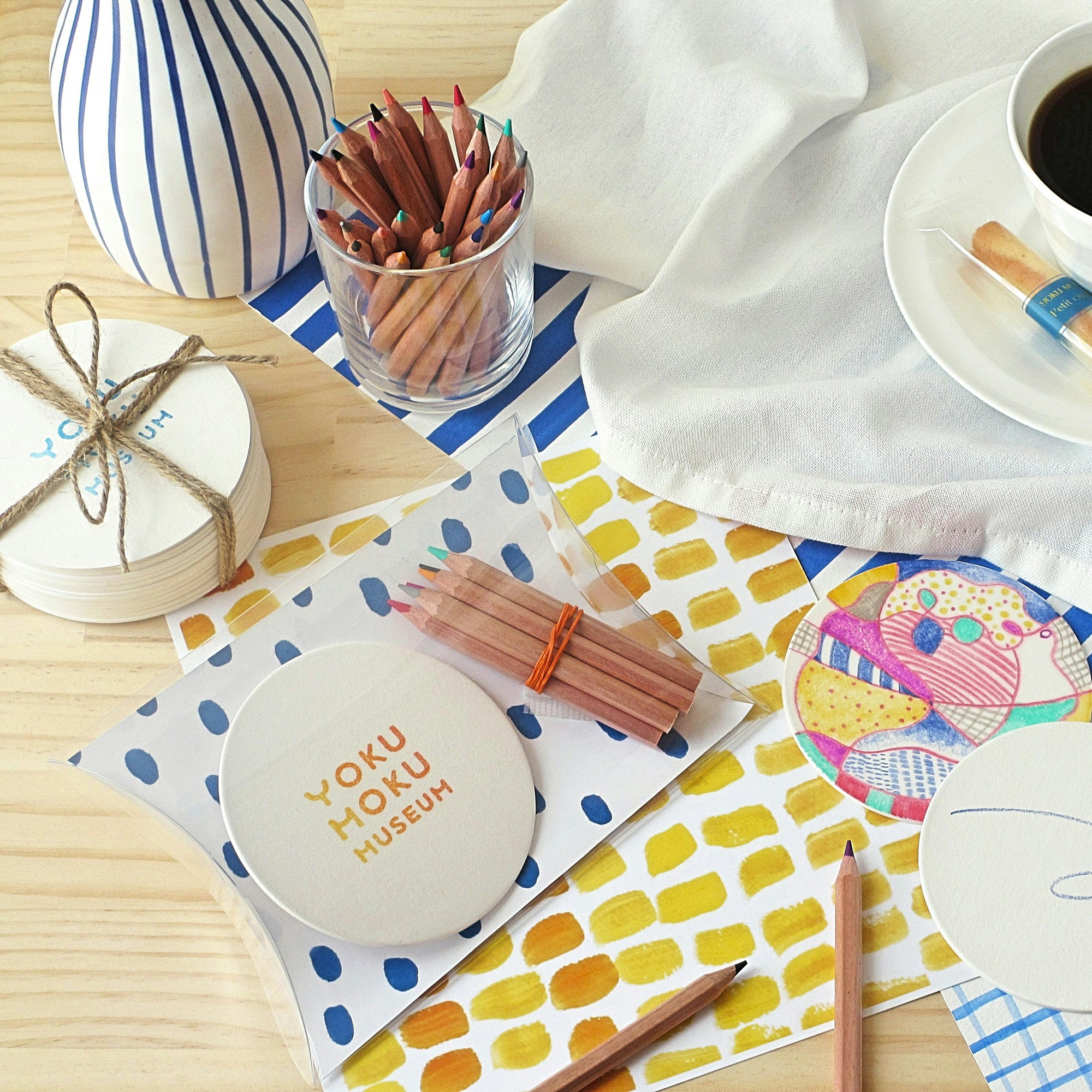 アートキットメニューとは、気軽にクリエイティブワークを楽しみ、リフレッシュすることのできる体験型カフェメニュー。第1弾「世界で1つだけのコースターをつくろう」では、ドリンク、プティシガールと無地のコースターや色鉛筆などをセットで提供(税込1650円)。11月29日までの期間限定で、テイクアウト・取り寄せにも対応する。