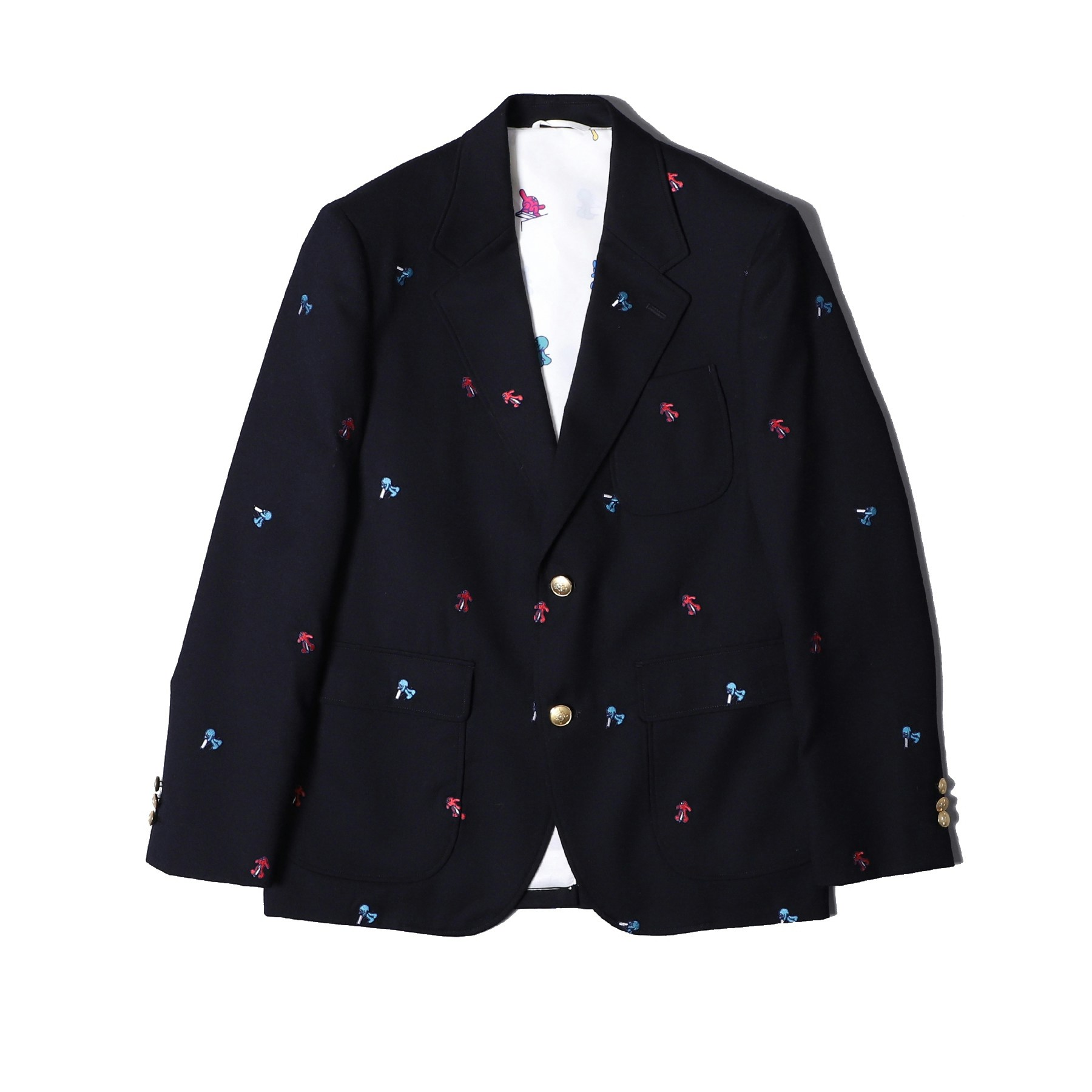 これを記念して、様々なコラボレーションアイテムが発売。ジェームス・ジャービスのアートワークの刺繍をあしらったネイビーブレザー(JAMES JARVIS × POGGY THE MAN)をはじめ、レギュラーカラーシャツ、チノパンツ、Tシャツ、キャップなどがラインナップされている。