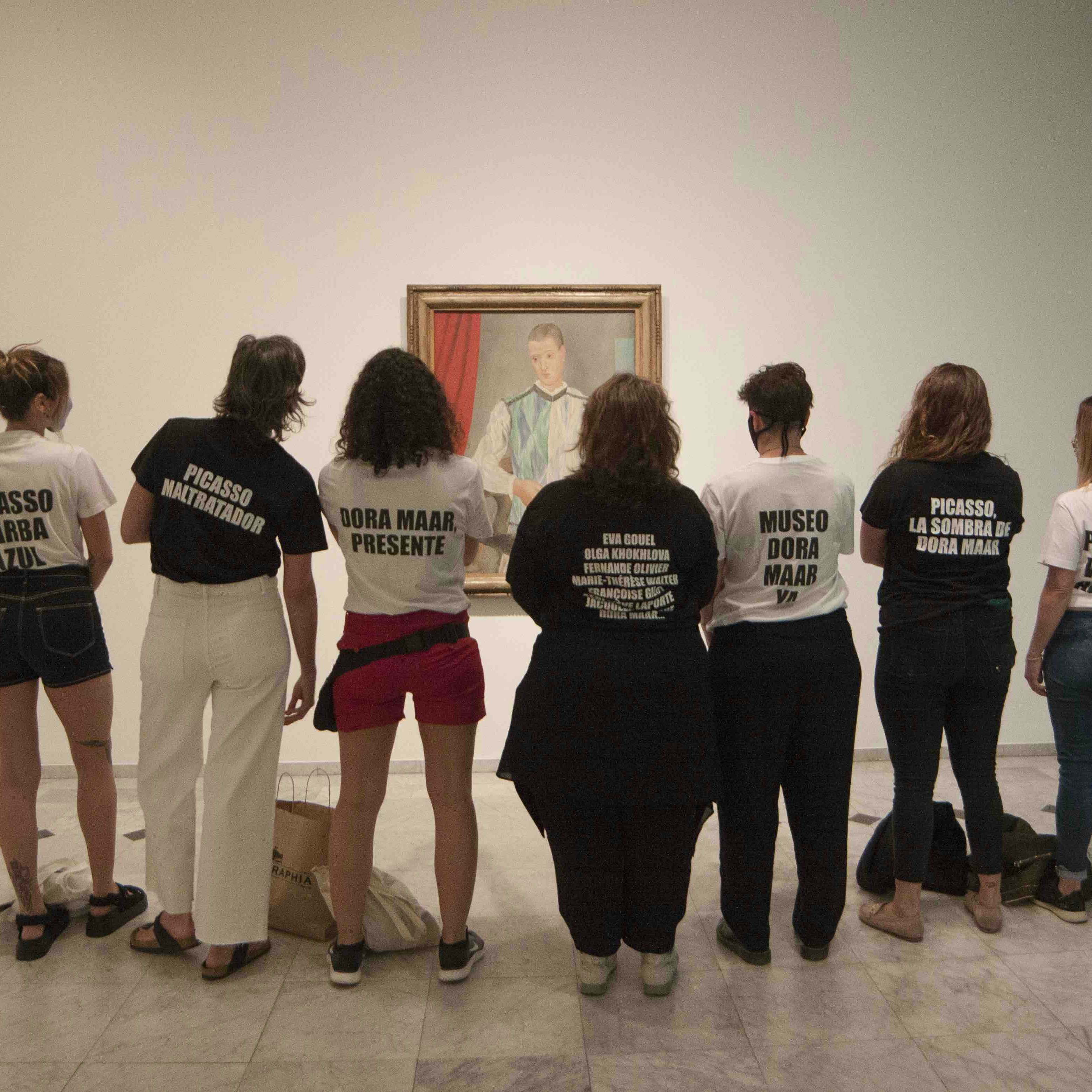 バルセロナの美術学校エスコーラ・マッサーナで「アートとフェミニズム」コースを教えているロピスが企画した今回のデモでは、参加者たちが「Picasso, women abuser(ピカソ、女性虐待者)」「Picasso, la sombra de Dora Maar(ピカソ、ドラ・マールの影)」と書かれたTシャツを着て美術館を訪ねた。