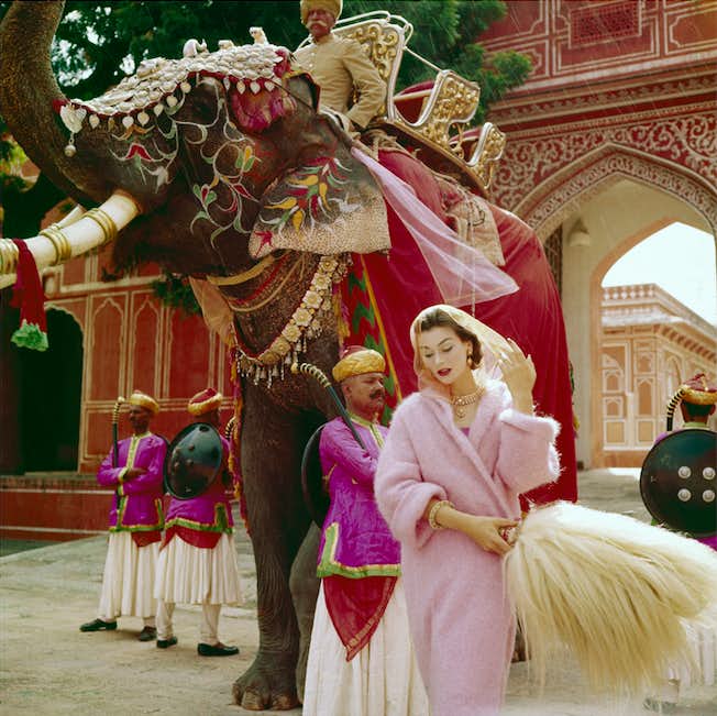 ノーマン・パーキンソン Anne Gunning in a Pink Mohair Coat Outside the City Palace, Jaipur 1956 Cプリント