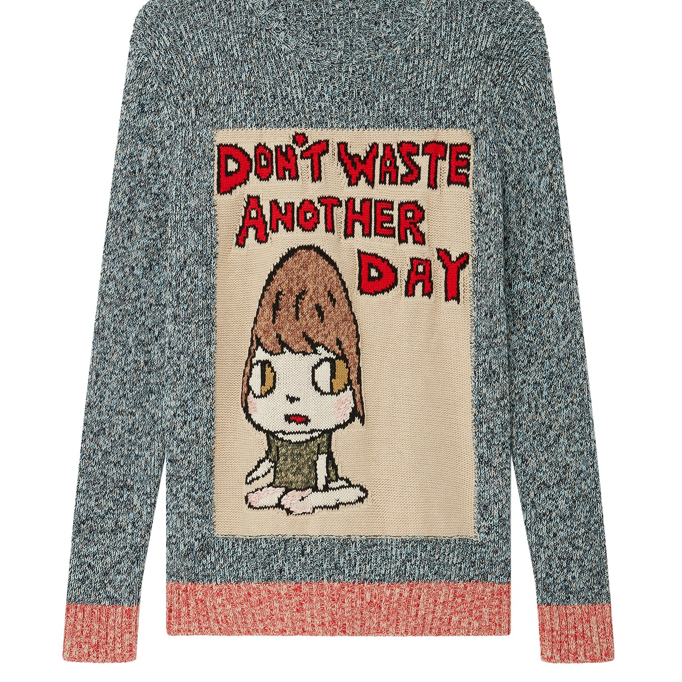 そして今回のユニセックス カプセルコレクションは、2年前同様、奈良の作品を様々なアイテムに落とし込んだもの。アクティビズム、美学、動物への愛といった、両者に共有する価値観を軸としたという。