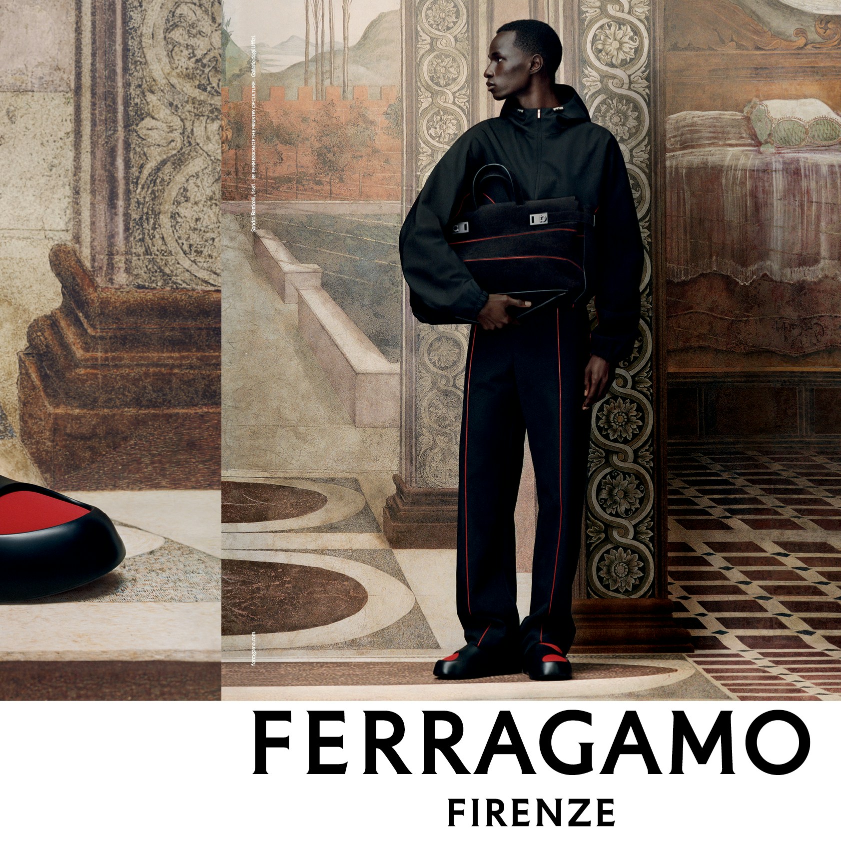 マクシミリアン・デイヴィスはこの絶妙なマッチングについてこう語っている。「ルネサンスはフィレンツェに色濃く根付き、そのフィレンツェの文化はFERRAGAMOのクリエイティブを支える根幹として受け継がれています。メゾンが新たなステージへ踏み出すいま、ルネサンス発祥の地を私たちの原点であると再認識し、フィレンツェの深く芸術的なスピリットを活かして新しいコレクションを披露することは、とても意味のあることだと考えました」。