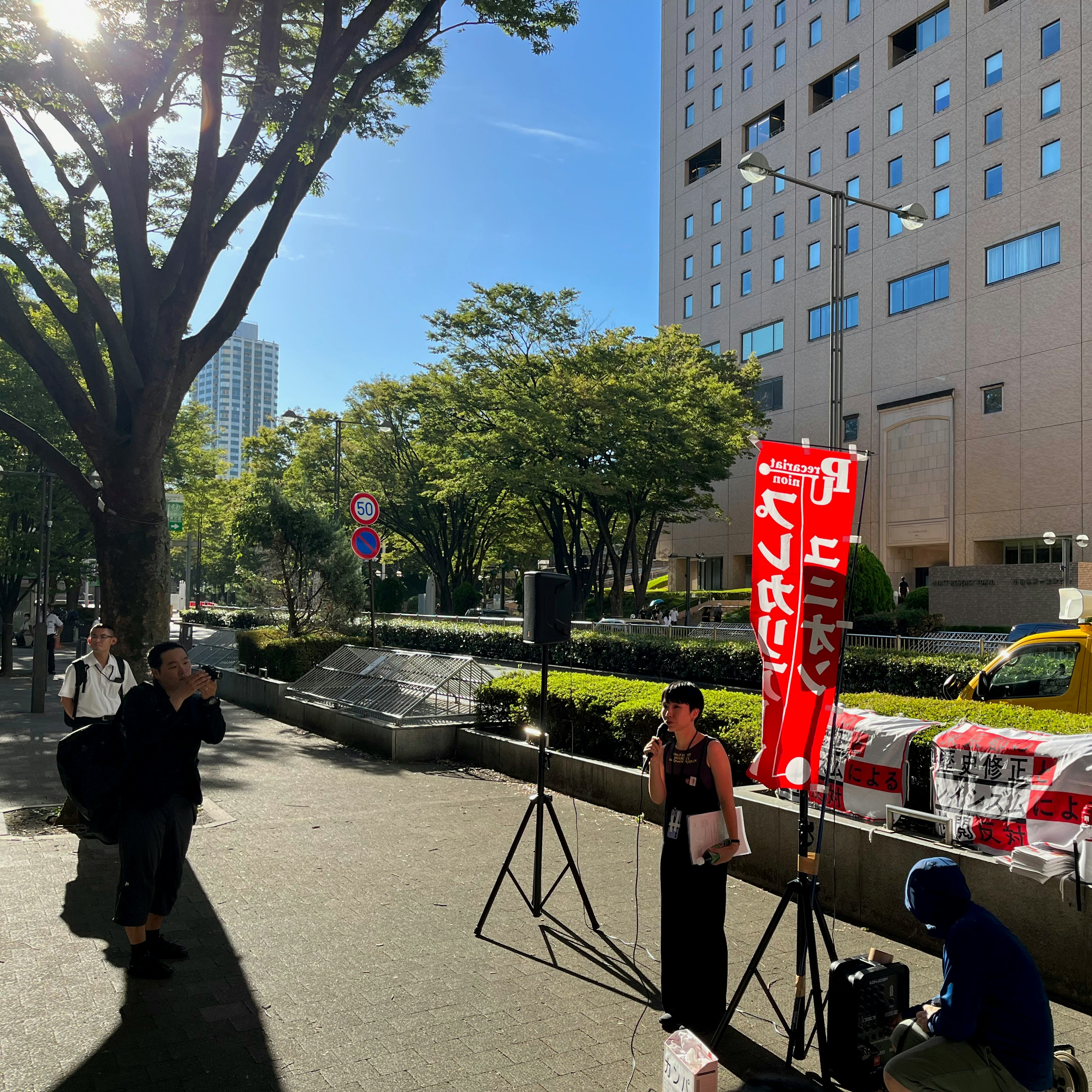関東大震災から100年の9月1日。東京都人権部による飯山由貴作品検閲に抗議し都庁で申し入れとデモを実施