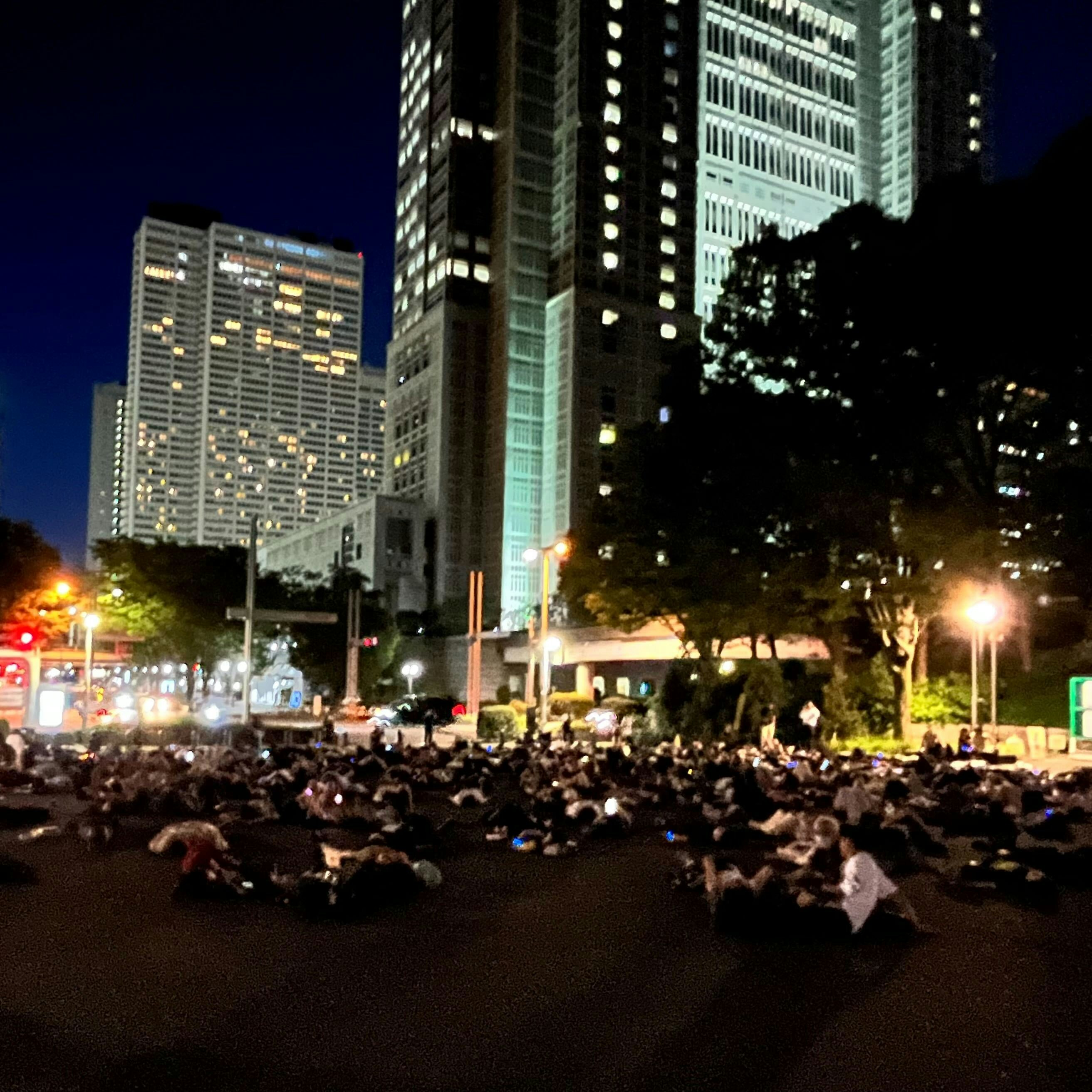 リレートークの後に集団は新宿中央公園水の広場に移動して、ダイ・イン(死者になりきる抗議行動)を実施。その後、都庁の周囲を一周するデモ行進を行った。