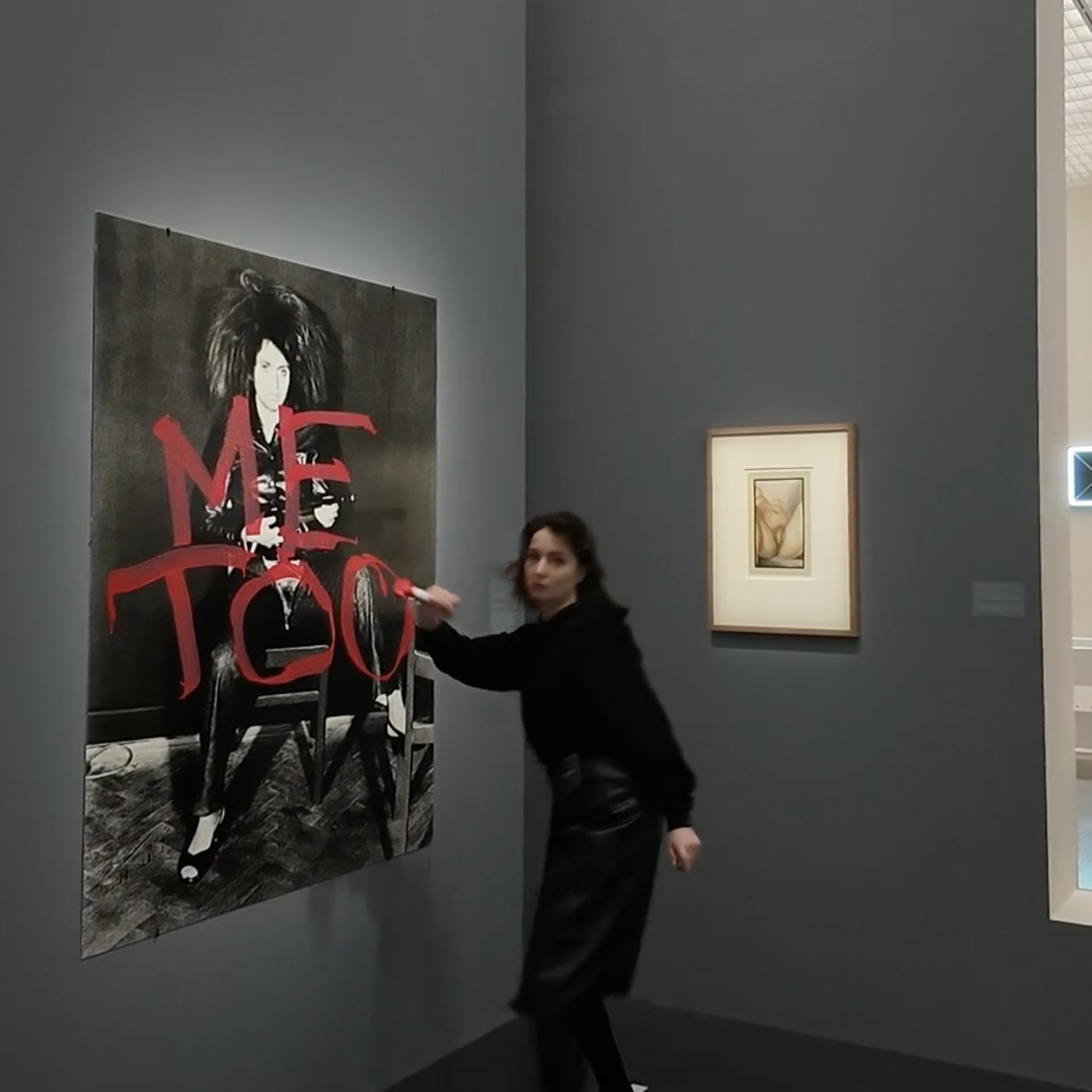 速報や記録されていた映像によると、6日(月)午後1時50分頃、ポンピドゥー・センター・メッスの展示室2を訪れた犯行グループの一部が、ドーセントや警備員の注意をそらしたうえで、3人の女性が展示作品数点に赤色の特殊なマーカーで「Me Too」と殴り書きした。混乱のなか、彼女らは展示室から連行され、少し経ってから展示室は閉鎖されたようだ。その際、1986年と1993年生まれの2人が逮捕・拘束され、3人目はアネット・メサジェの作品を持って逃走したという。メッス市警察署は、「集団による文化財の損傷・劣化および文化財の窃盗」についての捜査を開始しした。