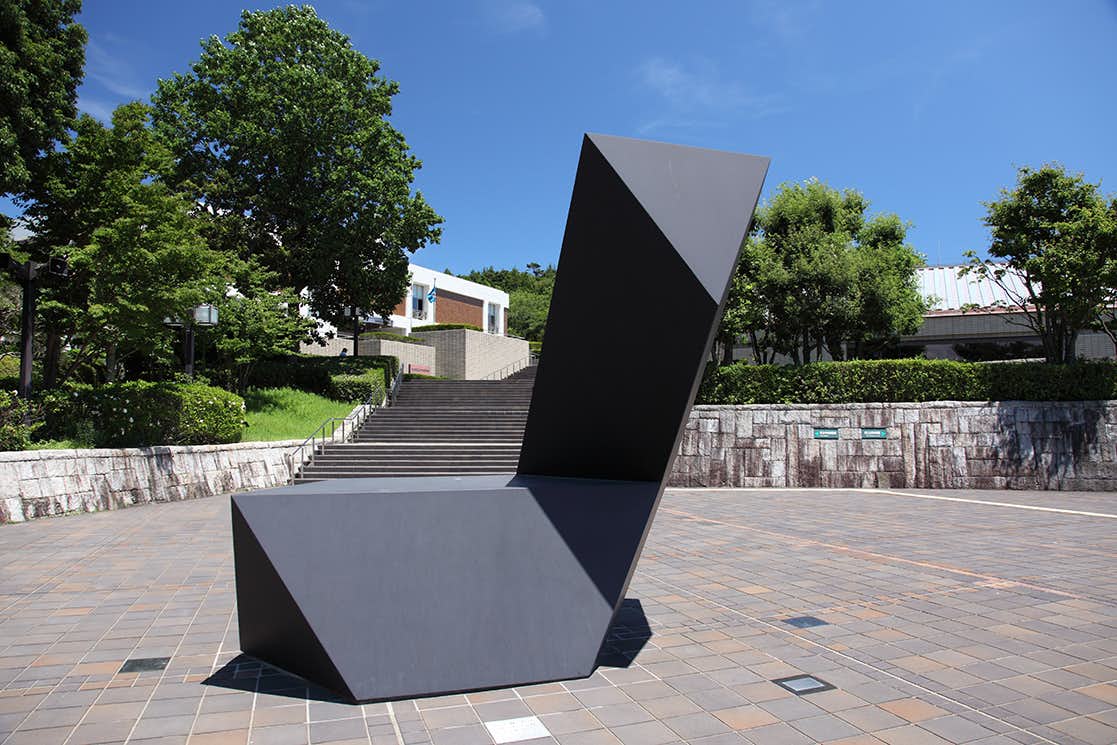清水九兵衛《地簪》(開館時)。清水九兵衛がこのプロムナードのために制作した、世界でひとつの彫刻作品