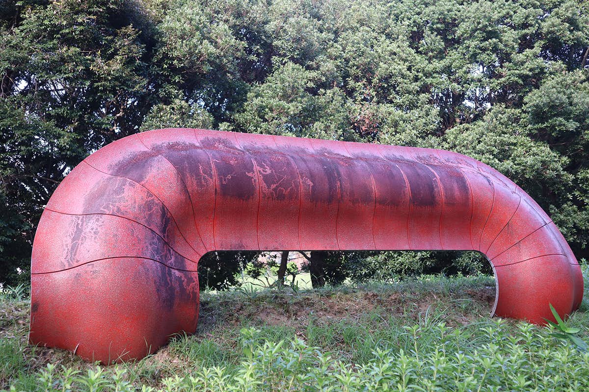 トニー・スミス《アマリリス》。塗り替えから16年が経過し、退色が目立っている。表面には劣化による塗膜の剥離やさびも