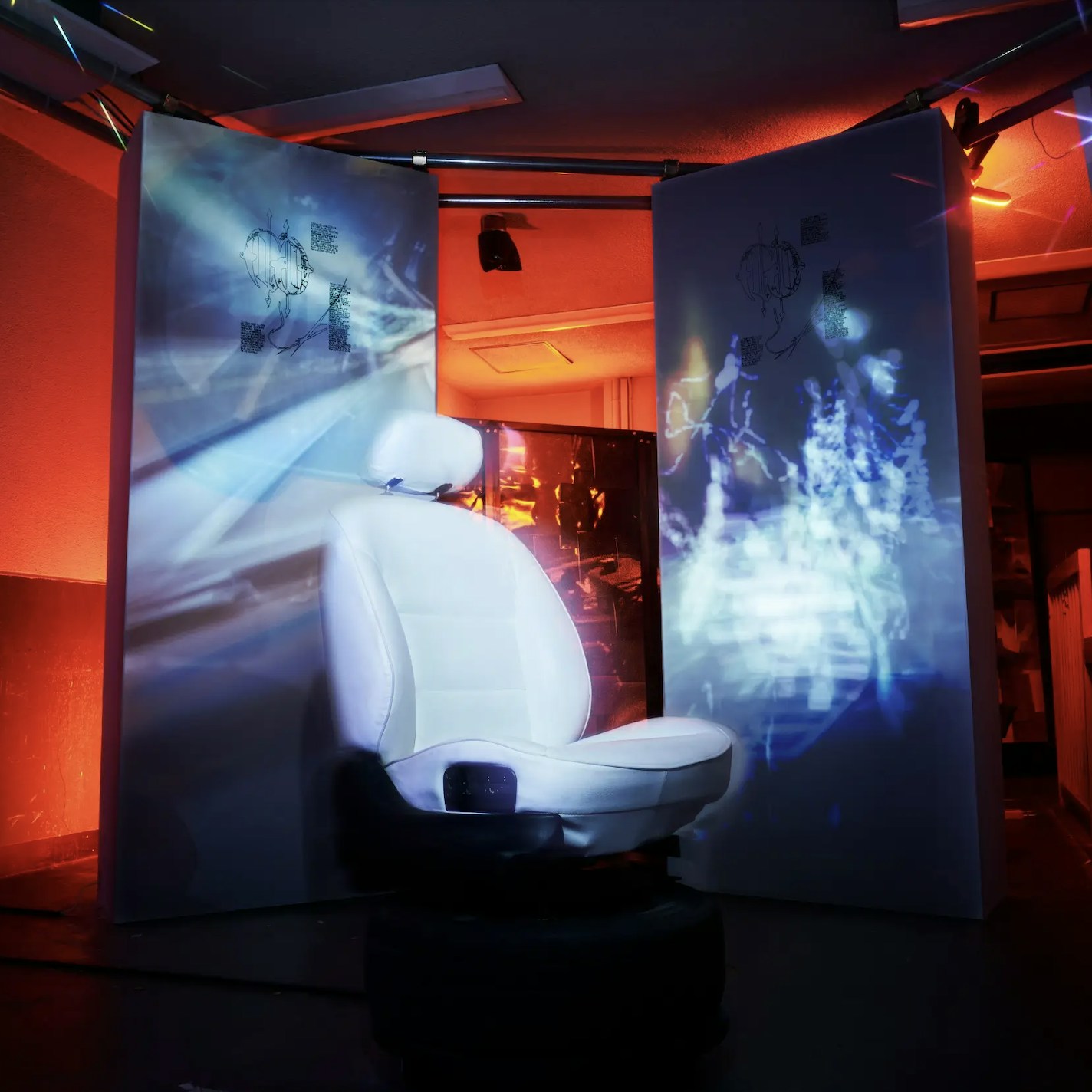 受賞作となったのは「HOT RODDERS “G” 4th Drifting with you『私の恋∞瞬間∞『螺旋』∞』」。車のシートに乗った鑑賞者が回転しながら体験する映像インスタレーションと、約300枚のバライタ印画紙を手焼きプリントしてパズル状に組み合わせた巨大な平面で構成された。