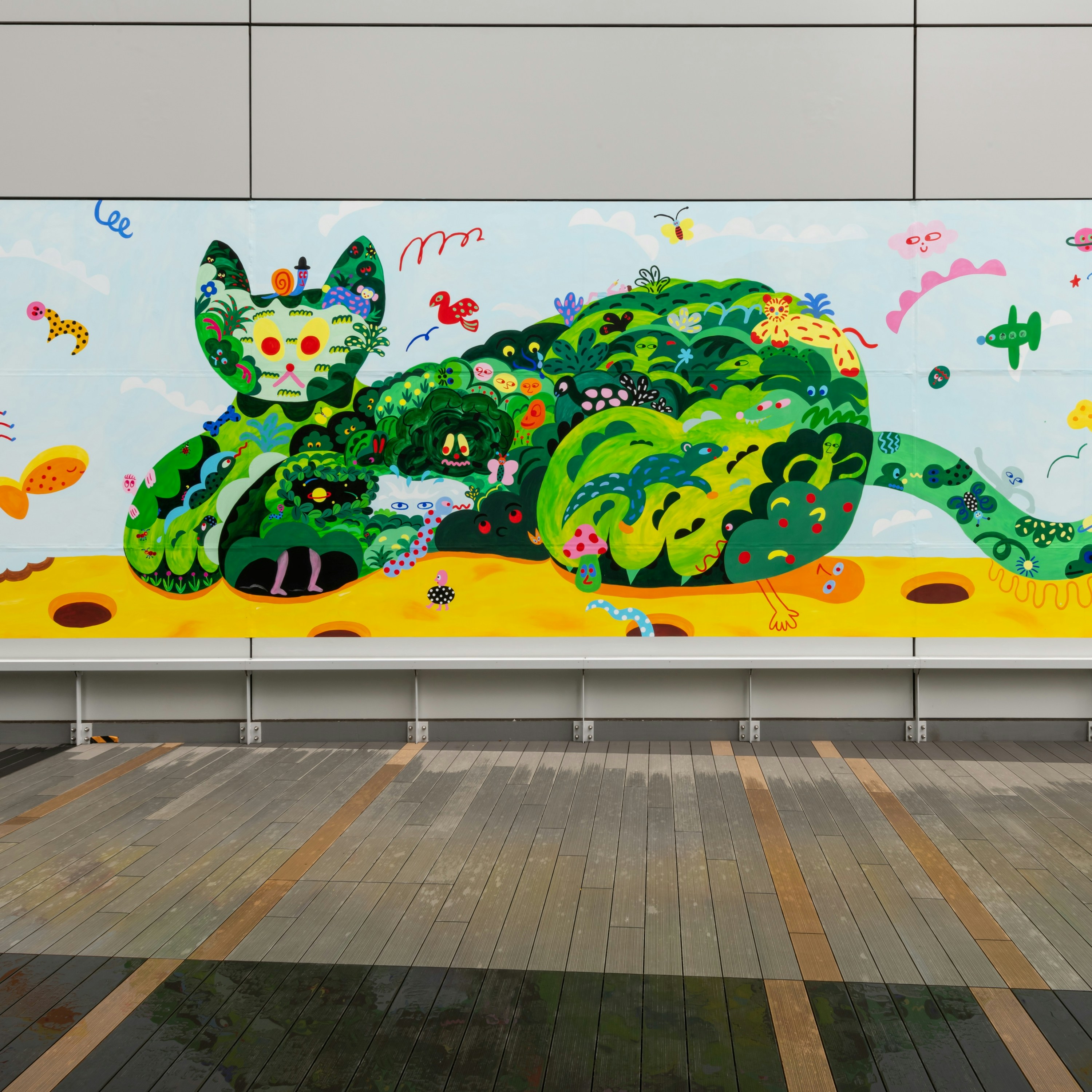 渋谷のヒカリエ4階の外壁で尾花賢一の新作壁画が公開されている。