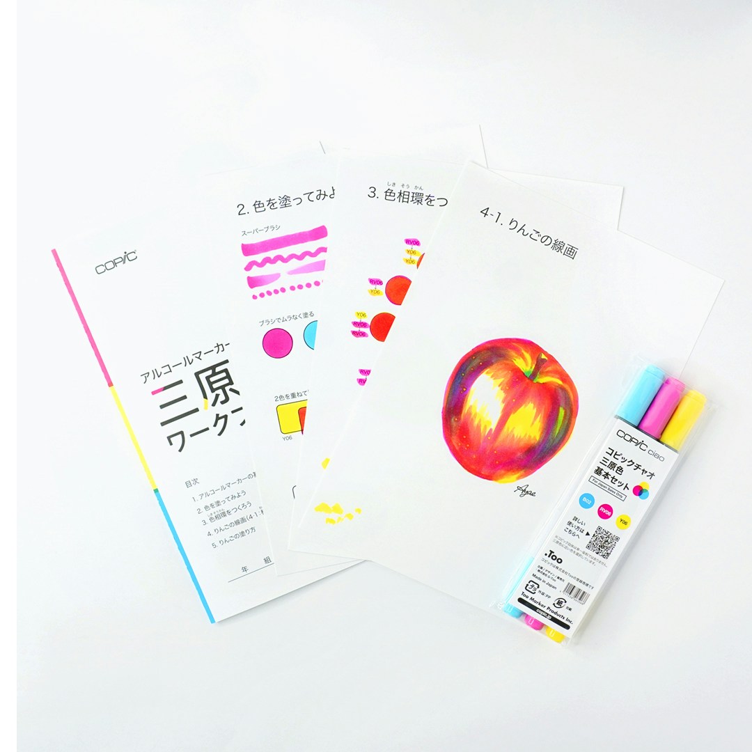 コピックがアルコールマーカーで三原色が学べるセットを発売。授業用のワークブックも