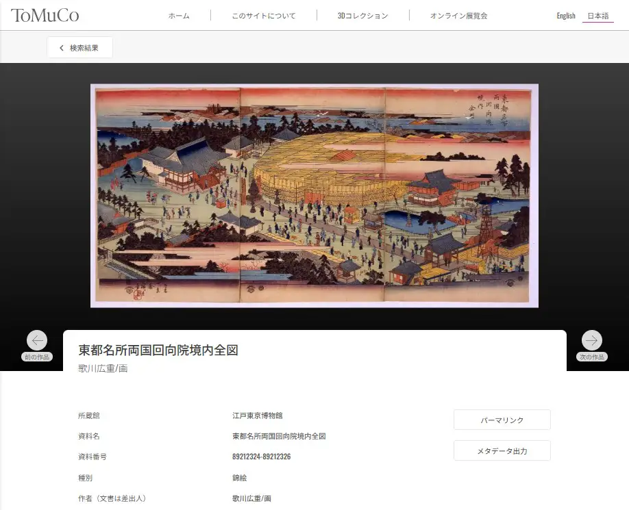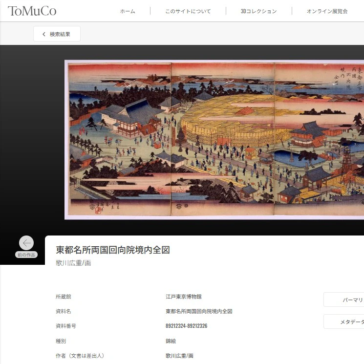 6つの都立美術館が収蔵する資料・作品を、横断的に検索できるデータベース「Tokyo Museum Collection」。その新たな機能として一部の画像データを無償でダウンロードできるサービスが今年4月から加わる。