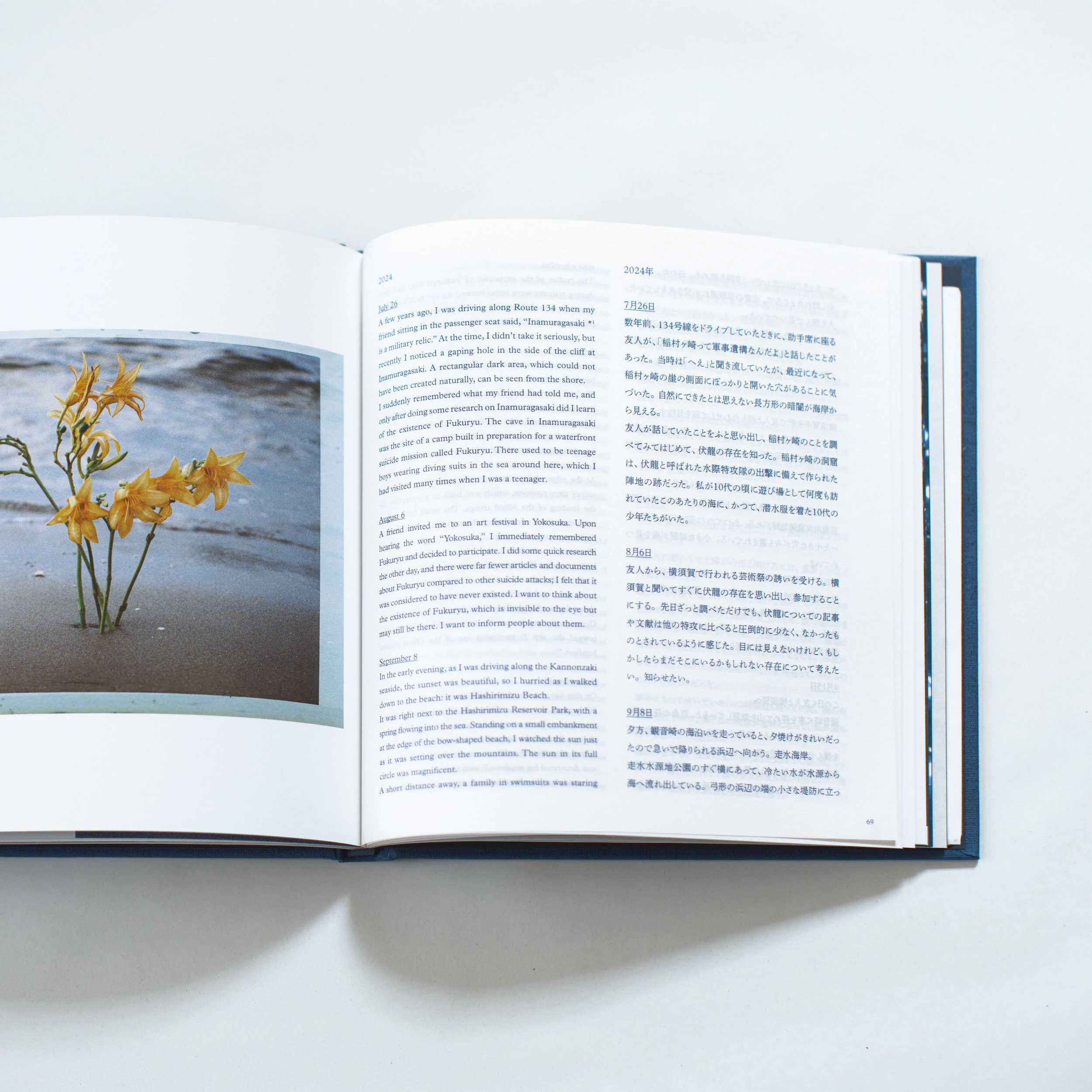 受賞作『-・・』は、第二次世界大戦の終戦間際、神奈川・横須賀の野比海岸などで訓練を行った特攻兵器「伏龍(ふくりゅう)」の元隊員が綴った体験記を手がかりにしたもの。撮影に加え、フィールドレコーディングによる音や光を用いたインスタレーションを展開し、歴史的な記憶を現代の空間に構成した。濵本は2025年に個人の出版レーベル「真珠出版」をスタートさせるなど、出版を通じた表現活動も精力的に行っている。