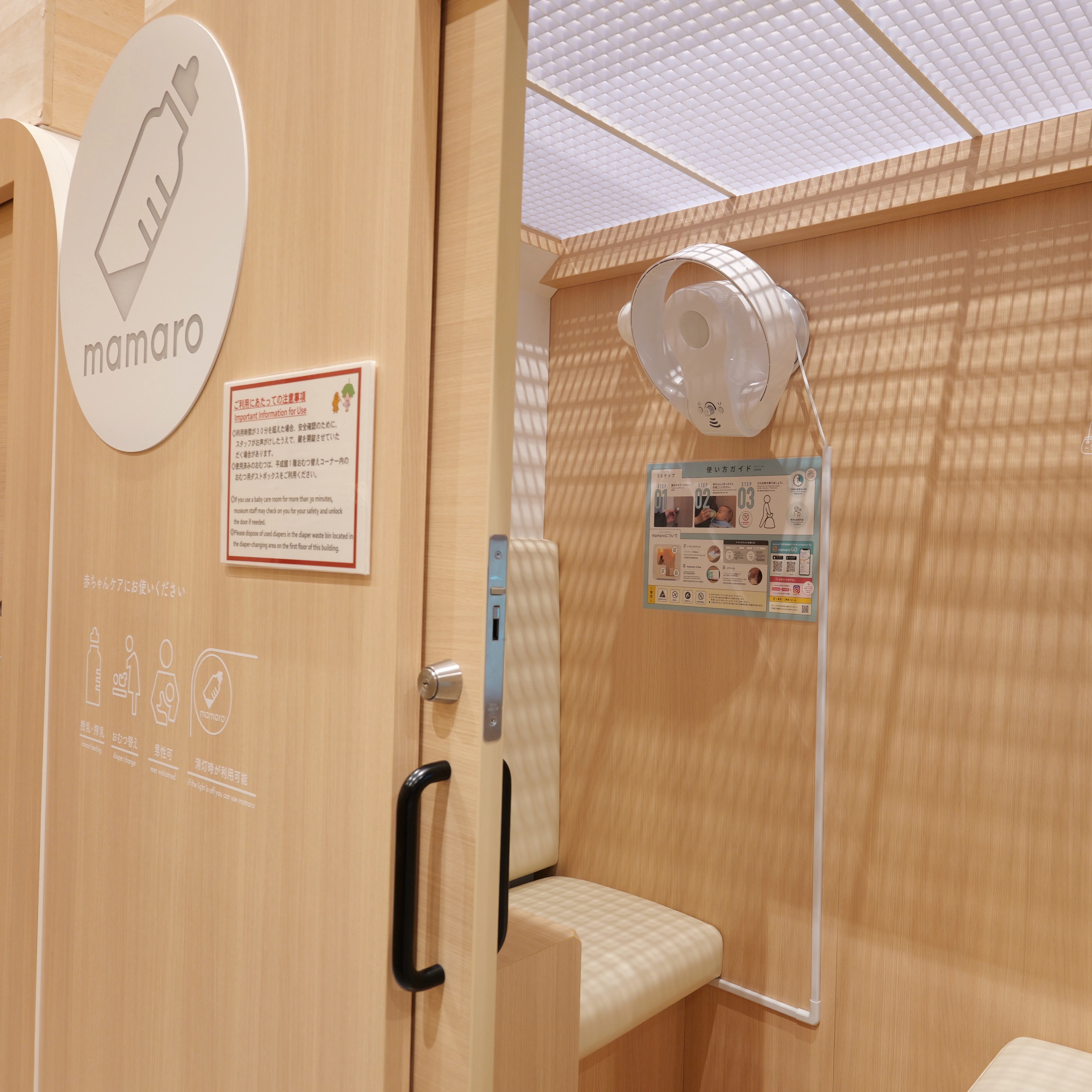 ファミリースペースは、主に未就学児(0~6歳)の子供とその保護者を対象としており、落ち着いた空間で親子が一緒にリラックスして過ごすことができる休憩スペースだ。乳児の授乳やおむつ替えが可能なベビーケアルームも2棟を用意。またファミリースペース付近には紙おむつ(ベビー用)の自動販売機も設置し、万が一の際にも対応できる環境を整えている。