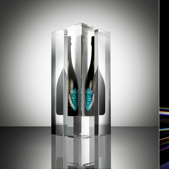 さらに「ドン ペリニヨン ヴィンテージ 2009」へのオマージュとして、クリスタル製のマスターピース「Prism」を制作。4つのクリスタルブロックの中央にボトルを収めることで、作品中央部から外側に向けて光が屈折しながら放たれ、色のスペクトルを生み出している。なおこの「Prism」は、クリスタルブランド・バカラによる受注生産となる。