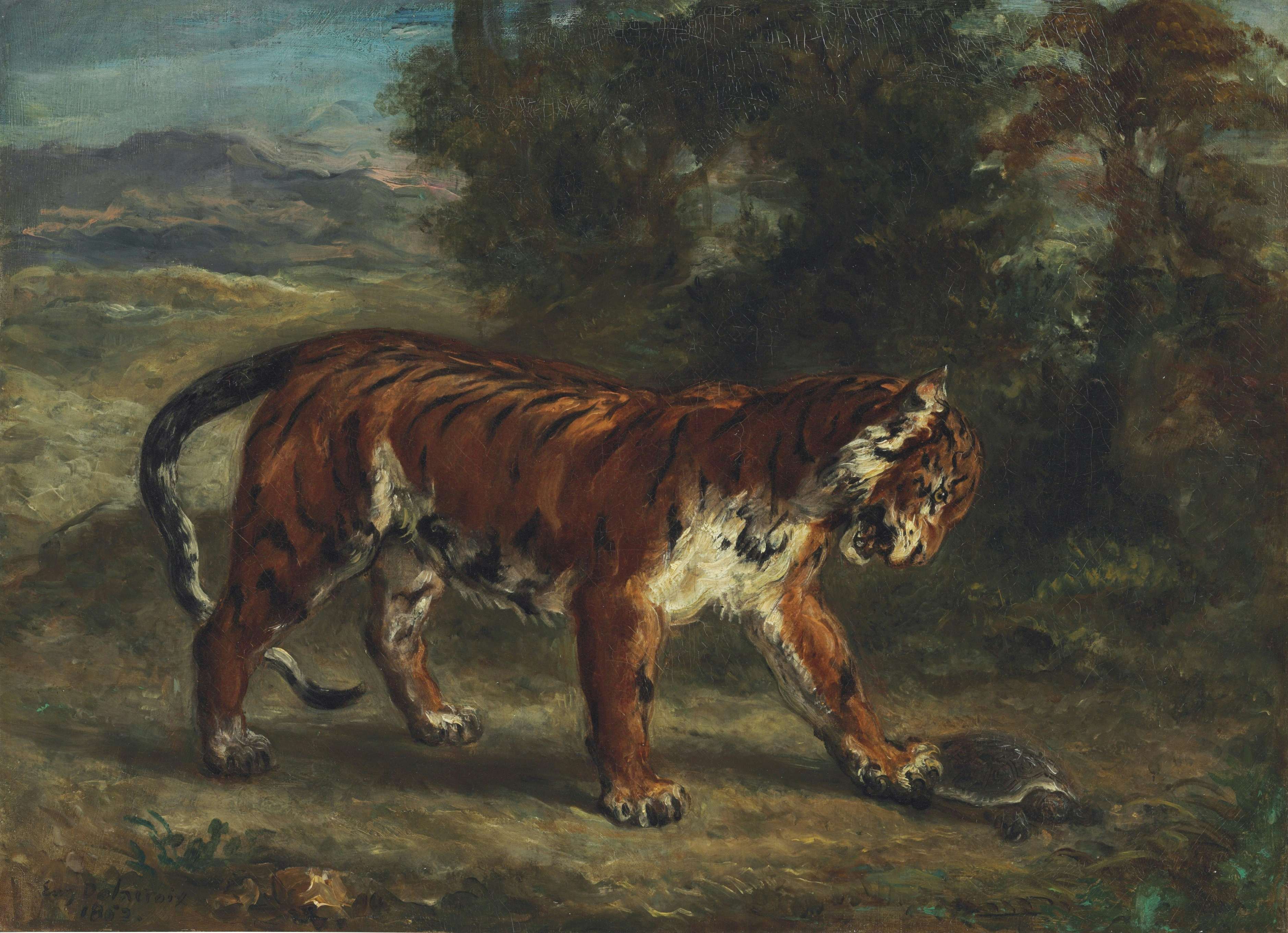 987万5000ドル(約10億9000万円)で作家記録を更新したウジェーヌ・ドラクロワ《カメと戯れるトラ》(1862) © Christie’s Images Limited 2018