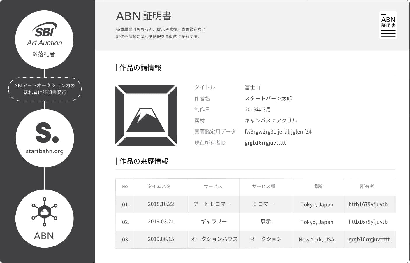 国内初。スタートバーンとSBIアートオークションが事業提携、オークション落札作品にブロックチェーン証明書を発行