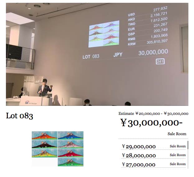 草間彌生《七色の富士 (Kusama 394-400)》(2015)の落札結果