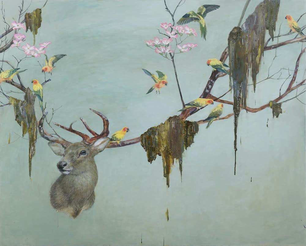 佐藤香菜 ハシバミの木 2015 キャンバスに油彩、刺繍 130.3×162cm courtesy of GALLERY IDF