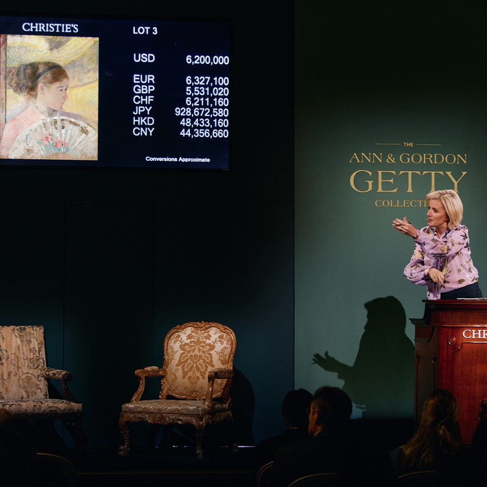 アメリカの慈善家でありアートコレクターのアン&ゴードン・ゲティ夫妻が長年にわたって収集してきた約1500点の美術品は、10月25日まで4回のオークションと6回のオンラインオークションにわたって競売される。事前の予想落札総額は1億8000万ドルと推定されており、すべての収益は、芸術と科学団体の支援を目的とするアン&ゴードン・ゲティ財団の資金に充てられるという。