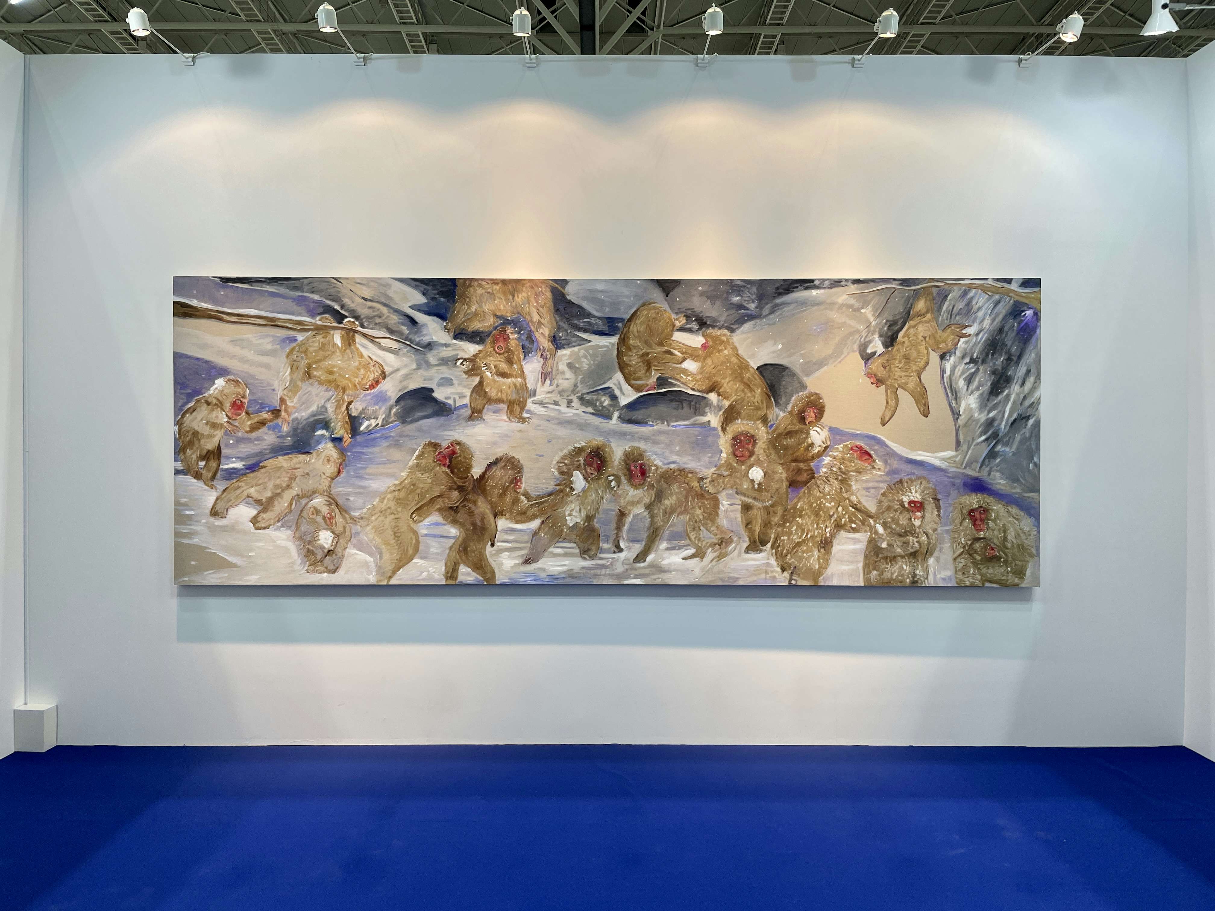 展示風景より、ジル・マレディ《雪の中で戦う猿》(2023)