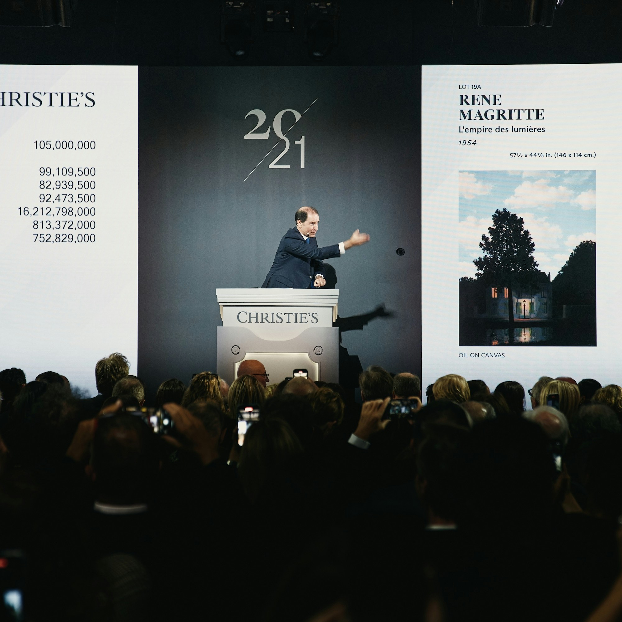 11月19日、クリスティーズ・ニューヨークの秋の目玉オークションが開催。ルネ・マグリットの《光の帝国》(1954)は1億2120万ドル(約188億円)で落札され、作家個人およびシュルレアリスム作品として史上最高額を更新した。
