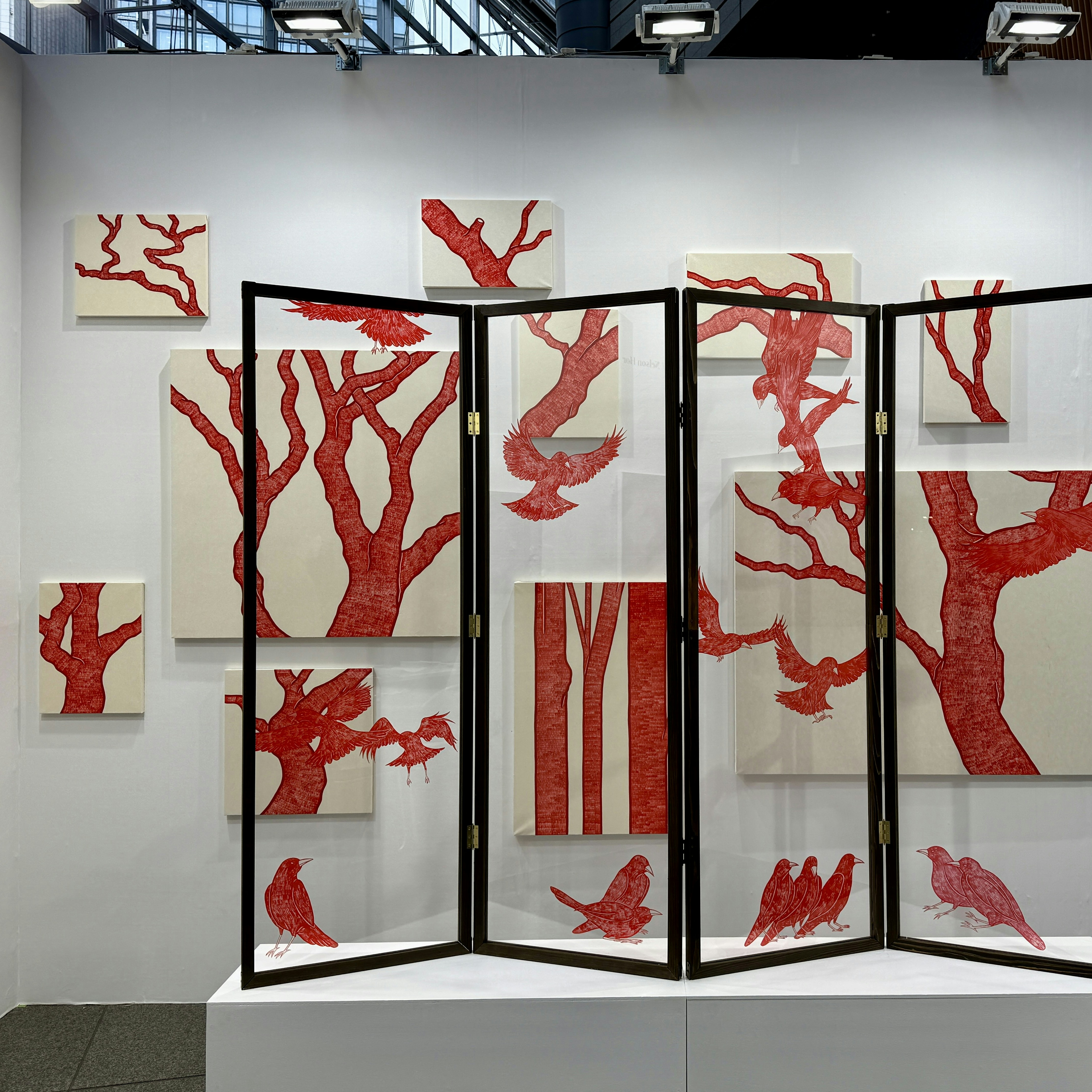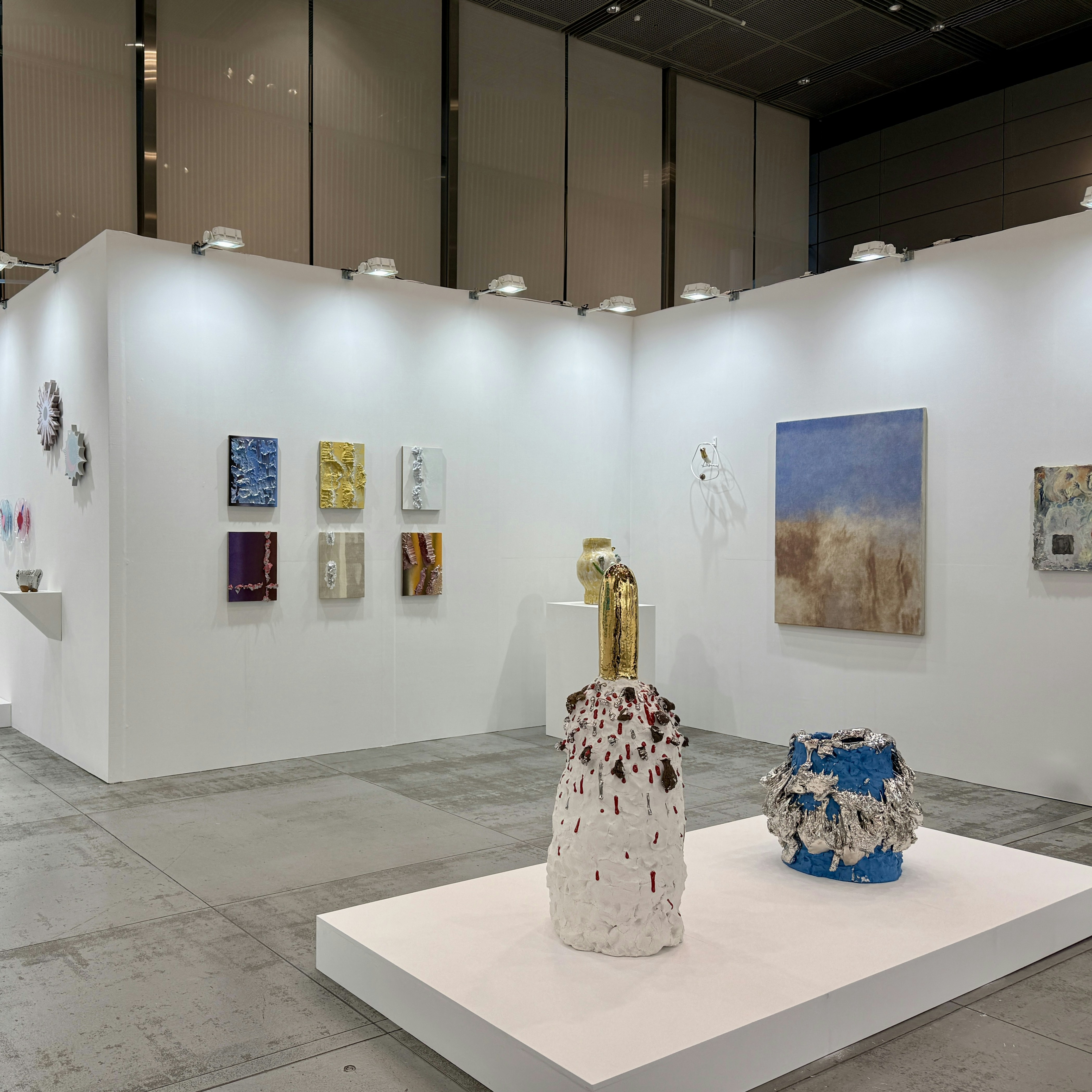 今年のフェアには139軒のギャラリーが参加。この数字は、前年の156軒より約11パーセント減。現代美術のギャラリーが集まるエリアでは、多くのギャラリーが例年と大きく変わらないアーティストのラインナップを展開している。販売しやすいスター作家の作品が目立ち、挑戦的な新しい試みは控えめだ。これは、市場の停滞が続くなか、確実に売れる作品を中心に据えることで安定した収益を確保しようとするギャラリーのサバイブ術の表れとも言える。