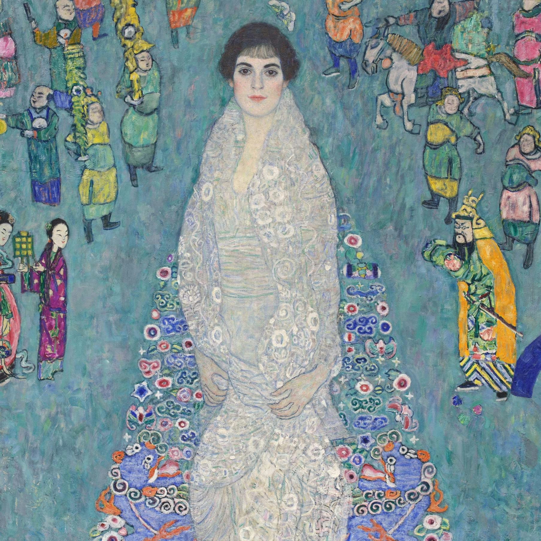 本作は高さ約182センチに及ぶ肖像画で、クリムト晩年の最重要作のひとつとされている。描かれているのは、クリムトの最大のパトロンとして知られるレーデラー家の令嬢エリザベートであり、東アジア的な装飾意匠を背景に、モダンなウィーン風の衣装をまとった若い女性の姿が特徴的である。豊かな装飾性、繊細な肌の表現、金色の色調を抑えながらも深い輝きを放つ構図など、クリムトが到達した「色彩と装飾の頂点」を示す作品として知られる。これまで一度も公開市場に出たことがなく、その稀少性も落札結果に反映された。