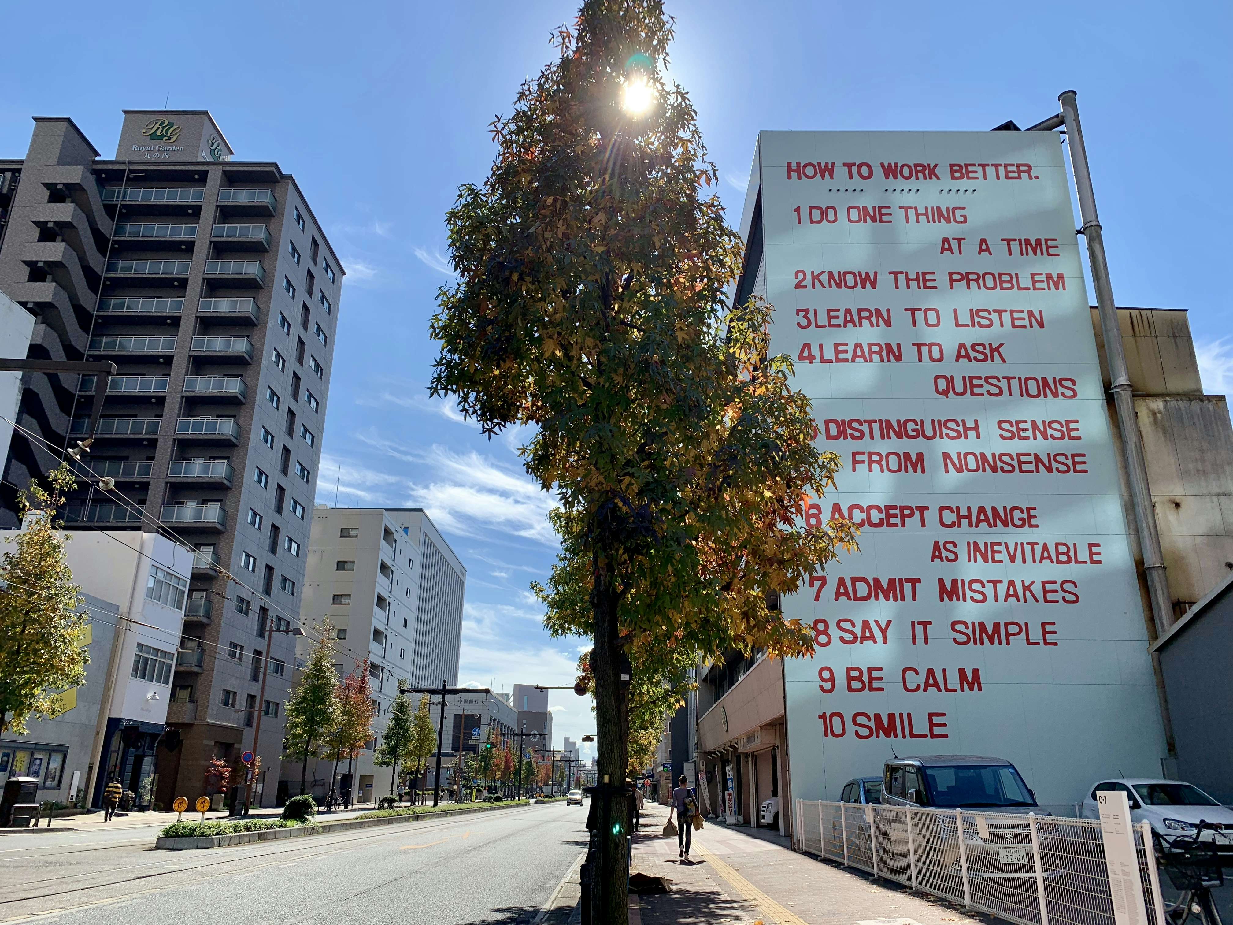 岡山ランドリービルに展示されているぺーター・フィッシュリ ダヴィッド・ヴァイス《より良く働くために》