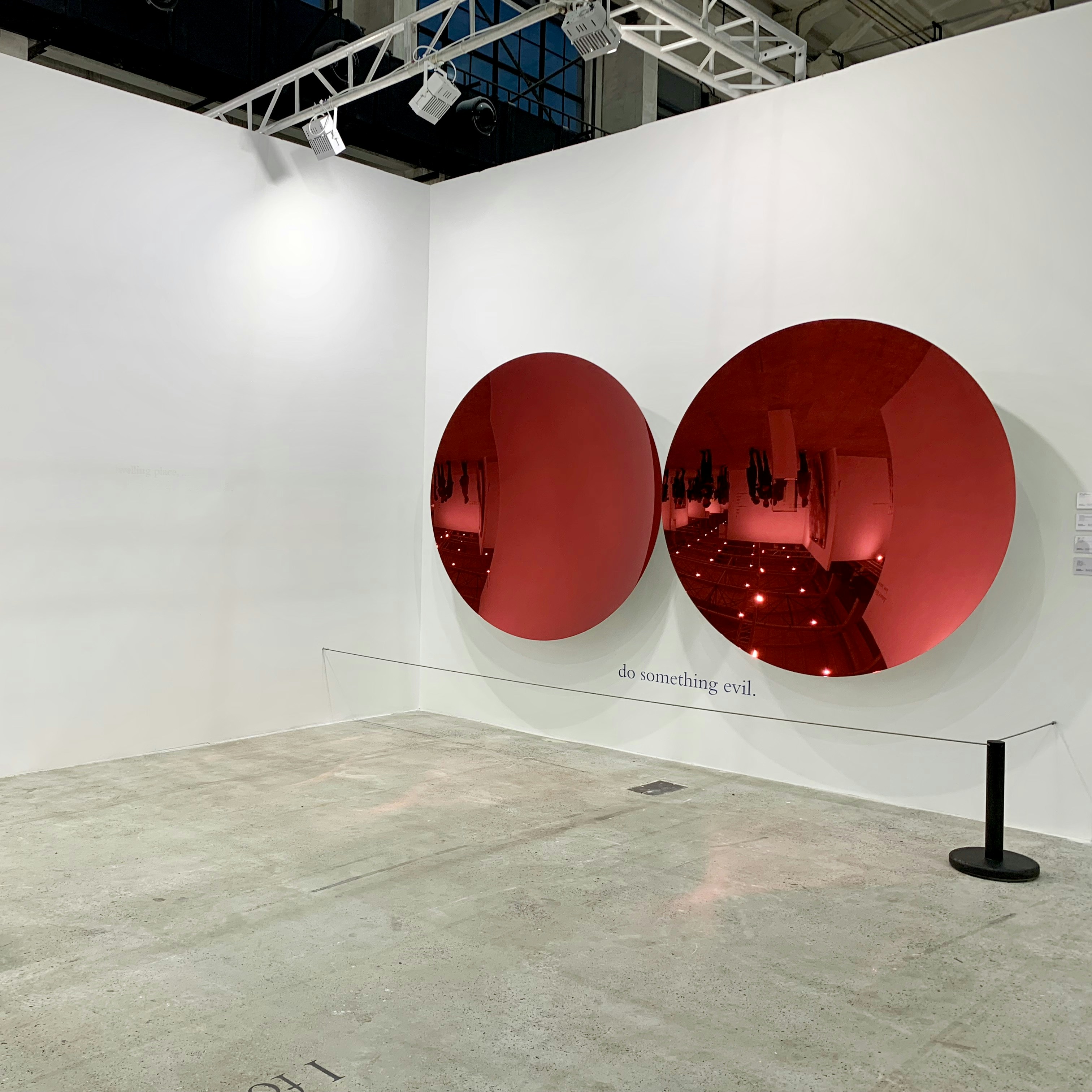そして目線を上に移すと、そこにはテキストを用いた作品で知られるローレンス・ウィナーによる《AT A DISTANCE TO THE FOREGROUND》がフェアのキャッチコピーのように存在感を放っている。
