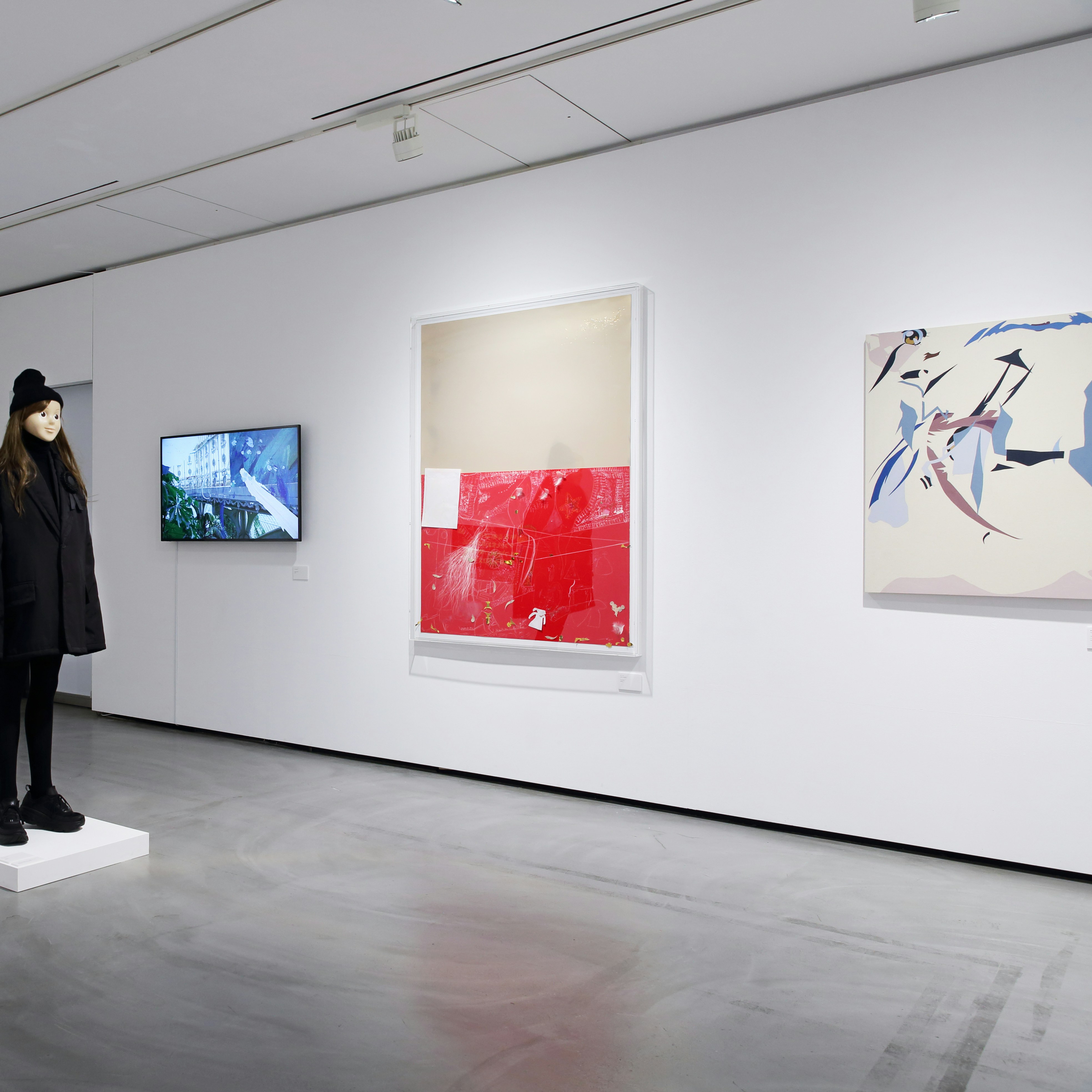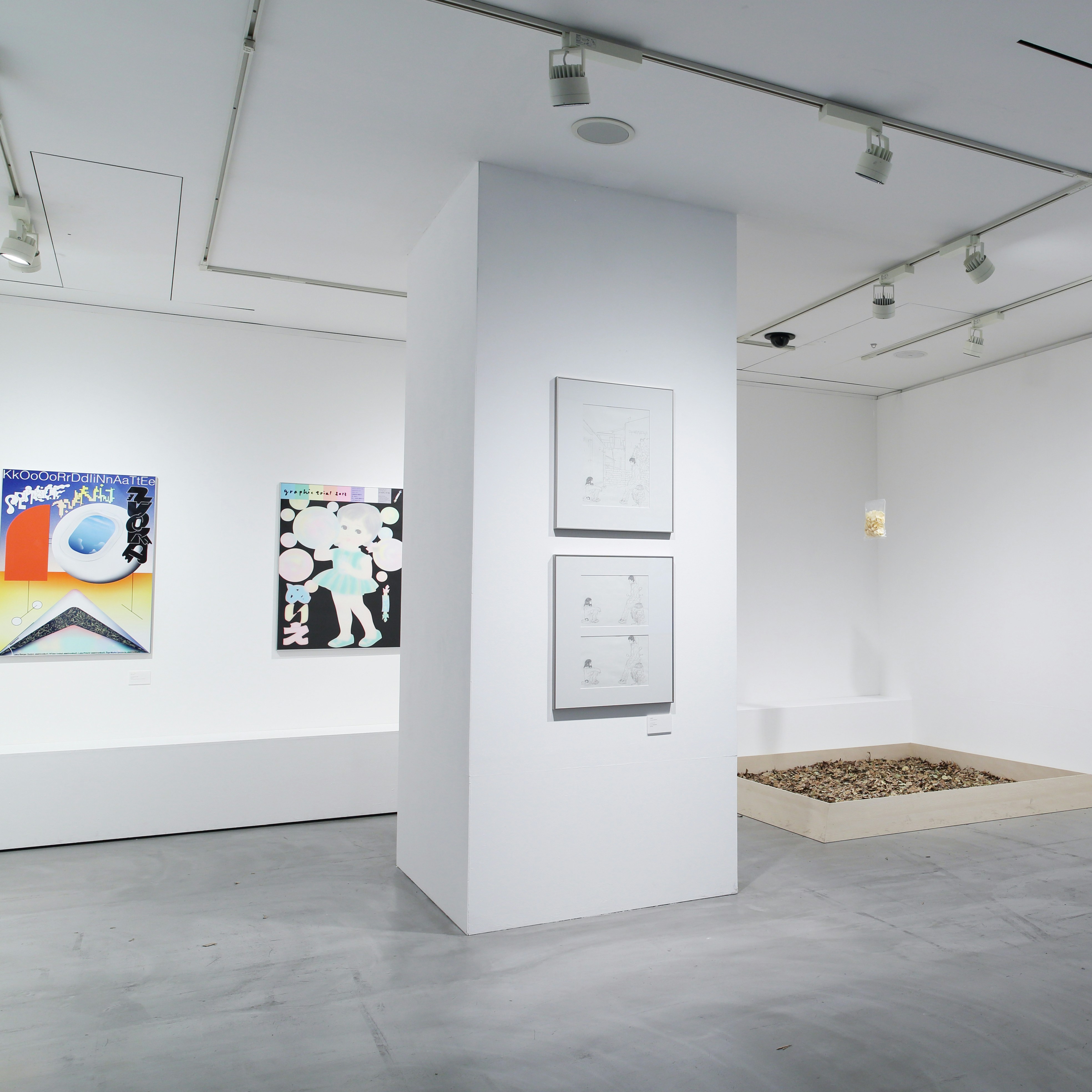 アーティスト、グラフィック・デザイナー、写真家など、多彩なジャンルの人々がともに作品を展示している本展。そこには、「メディアの特性を考慮しながら緻密に設計された作品も、ひとつのビジュアルが持つインパクトが様々なメディアを軽々と通貫してしまうような作品も、両方が同時に存在している状態が理想的な多様さ」だと考える企画者たちの思いが反映されている。